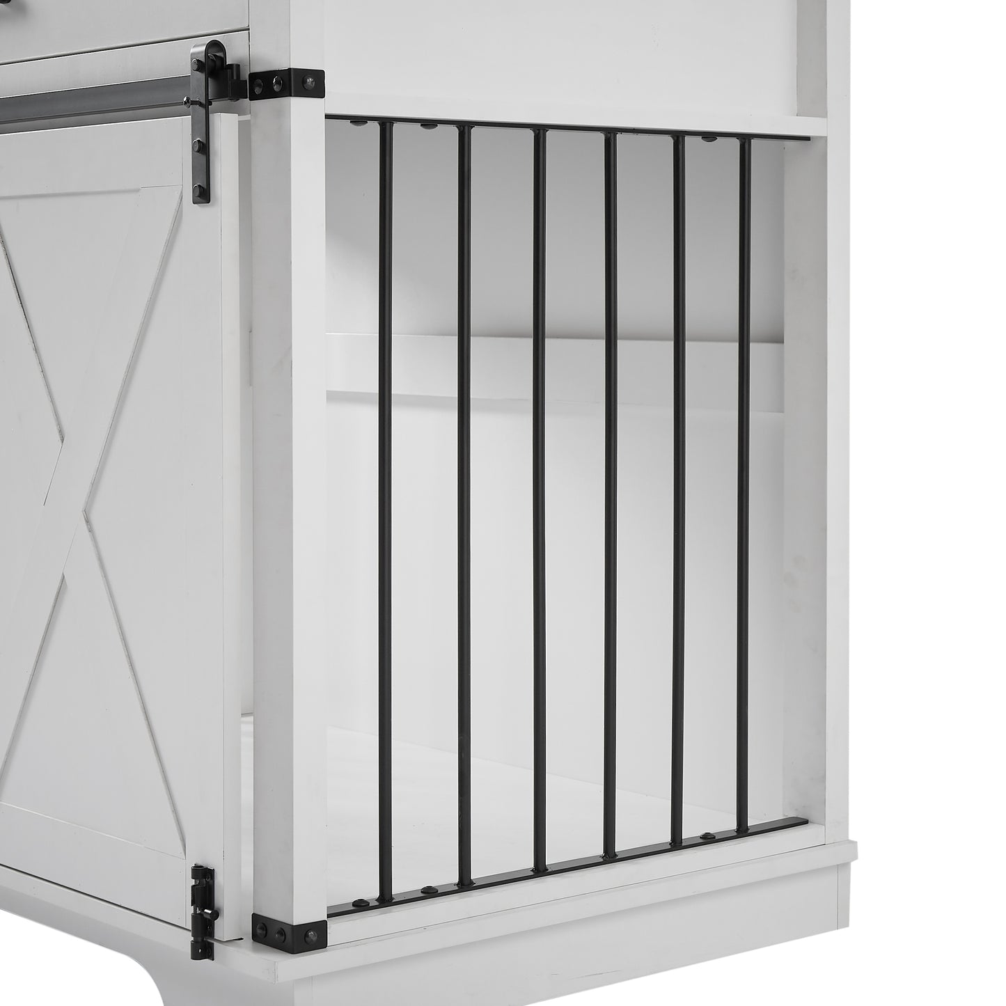 - The modern dog crate is designed in a modern style with clean and clear lines. It is not only an elegant storage rack in your home, but also a warm home for your pets.