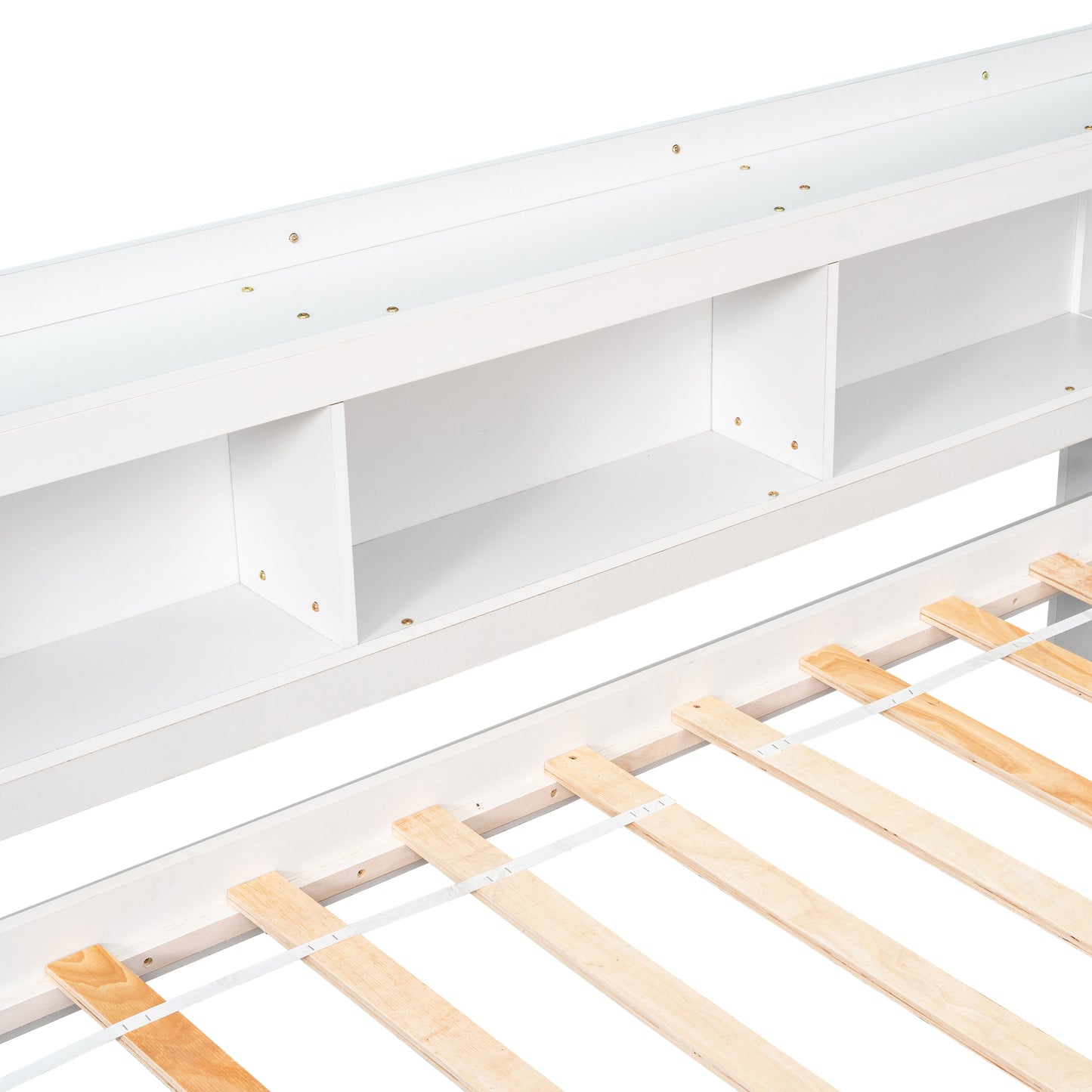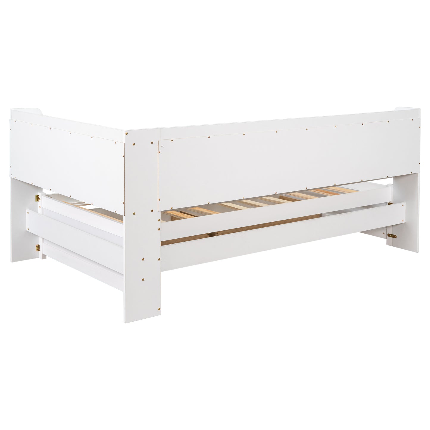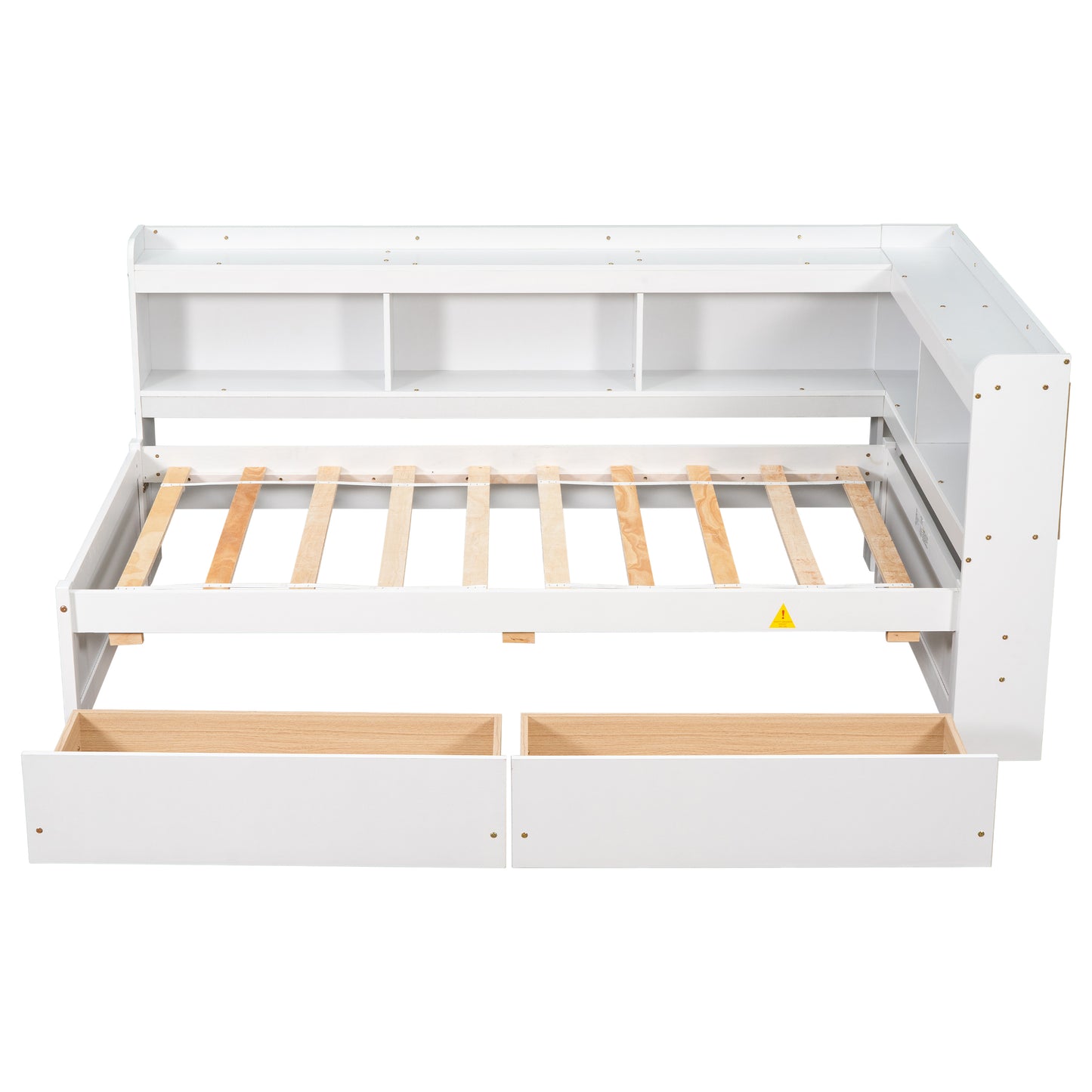 Twin Bed with L-shaped Bookcases,Drawers ,White
