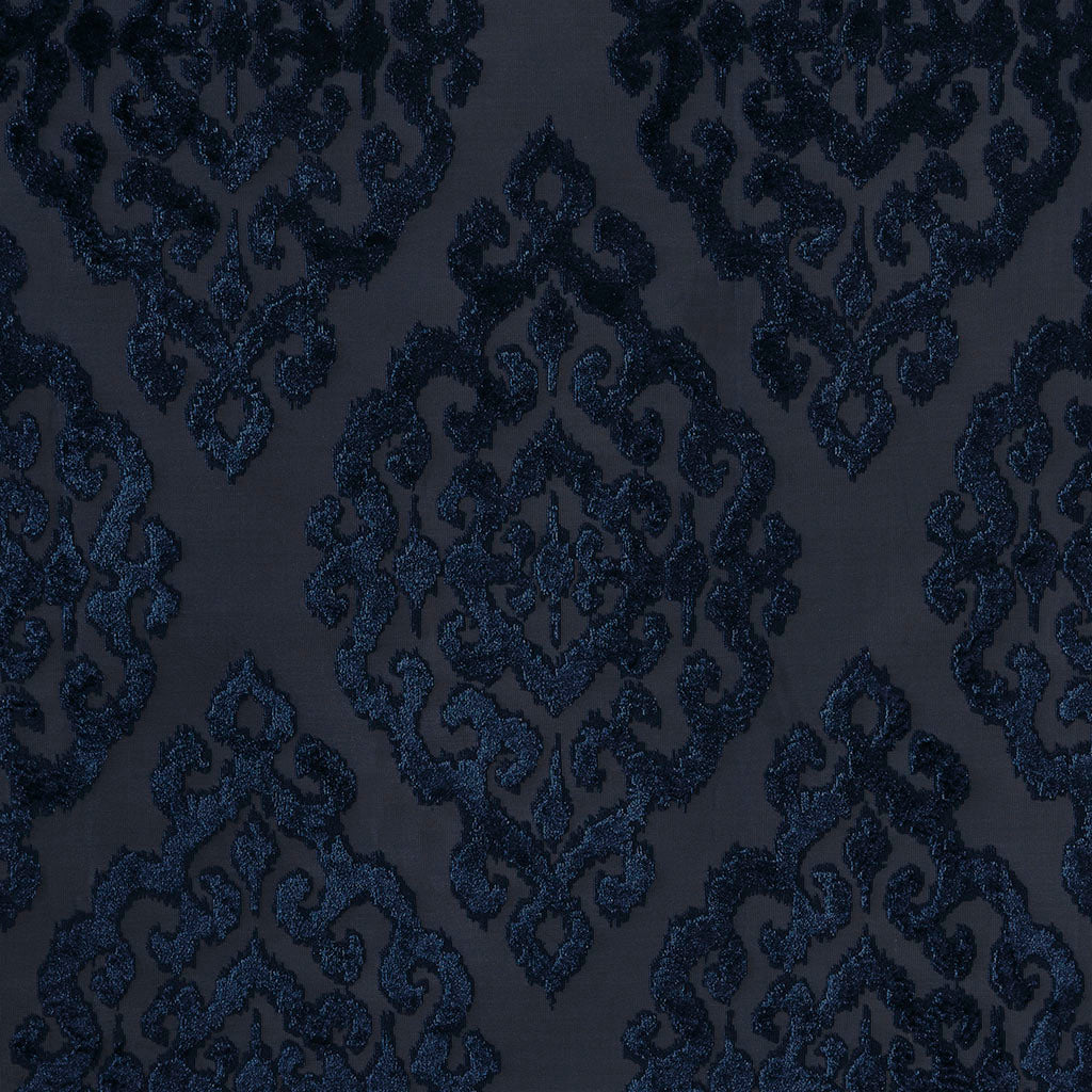 - Total blackout grommet top curtain panel in knitted jacquard damask design