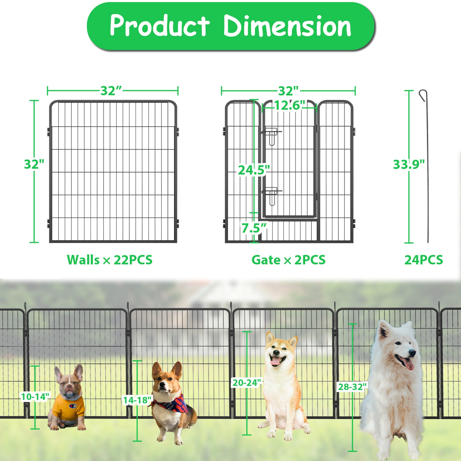 Dog Pens Outdoor 32" Height Foldable24 Panels Heavy Duty Metal Portable Dog Playpen Indoor Anti-Rust Exercise Dog Fence with Doors for Large/Medium/Small Pets Play Pen for RV Camping Yard