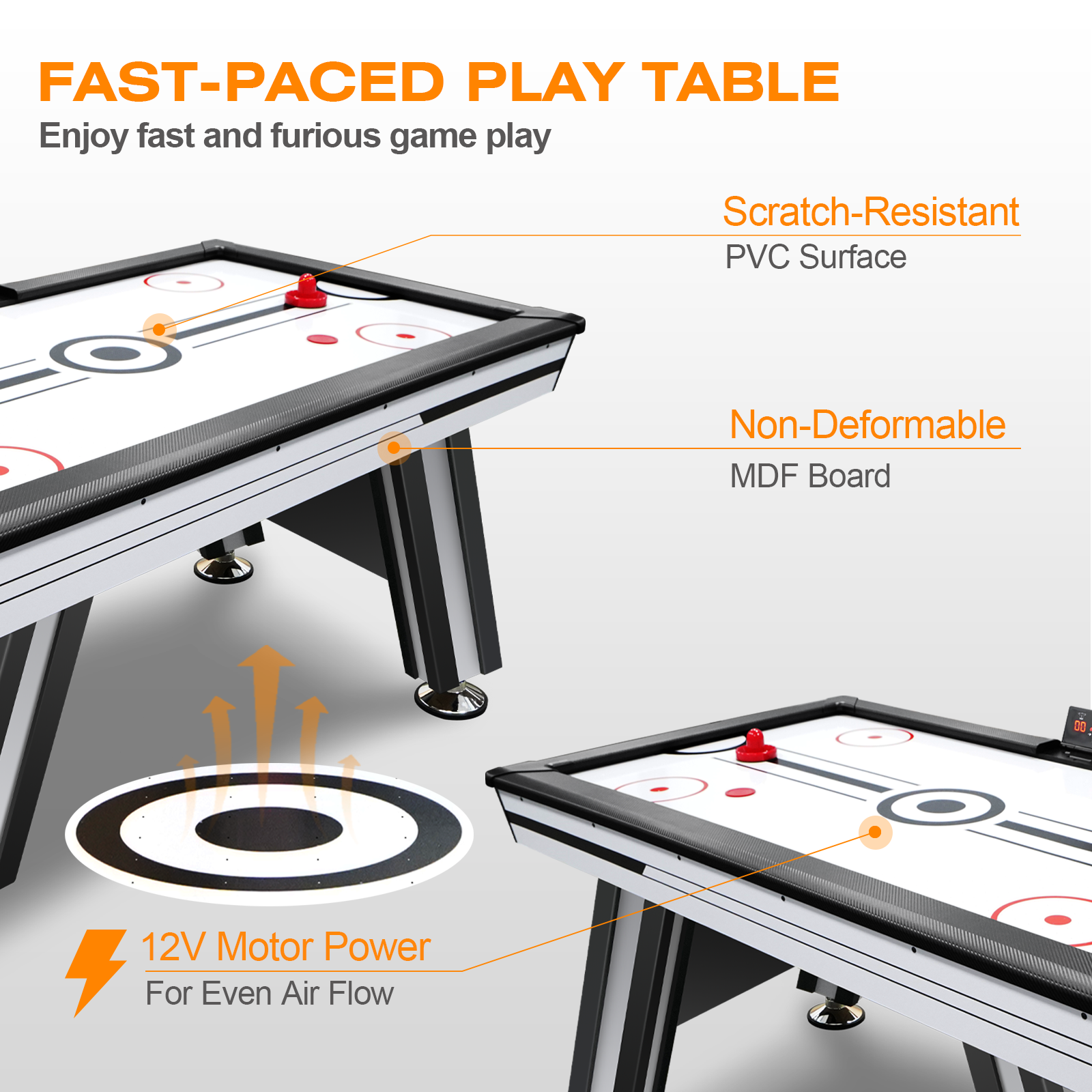 - Built to Last: The air-powered hockey table boasts a scratch-resistant PVC surface, breathable and warp-resistant MDF board. Crafted from materials that are sturdy, durable, and corrosion-resistant, it promises uninterrupted gaming sessions.