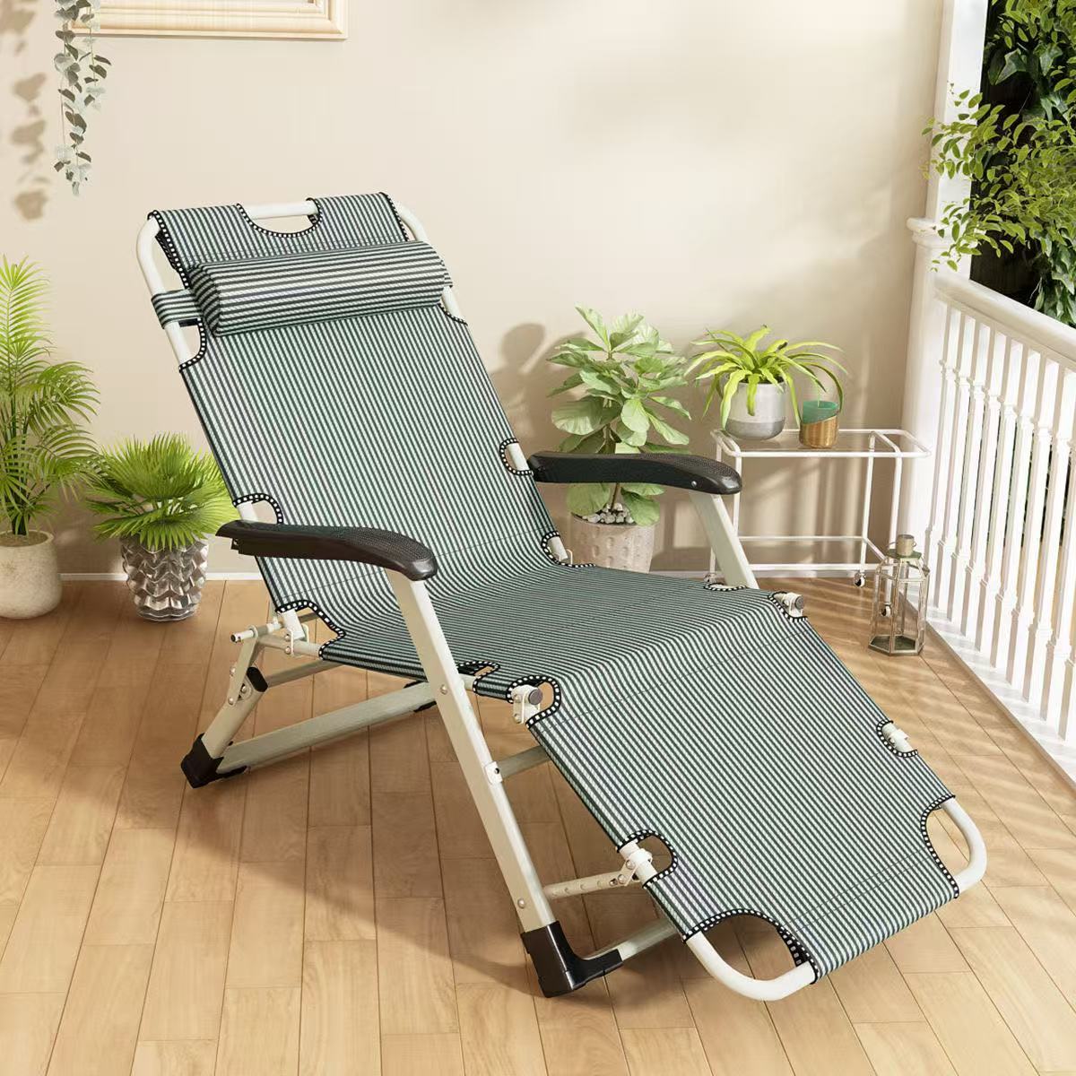 Folding textile waterproof patio lounger, outdoor adjustable and reclining sun lounger with pillow and saddle bag for lawn, beach, swimming pool, portable camping and sunbathing
