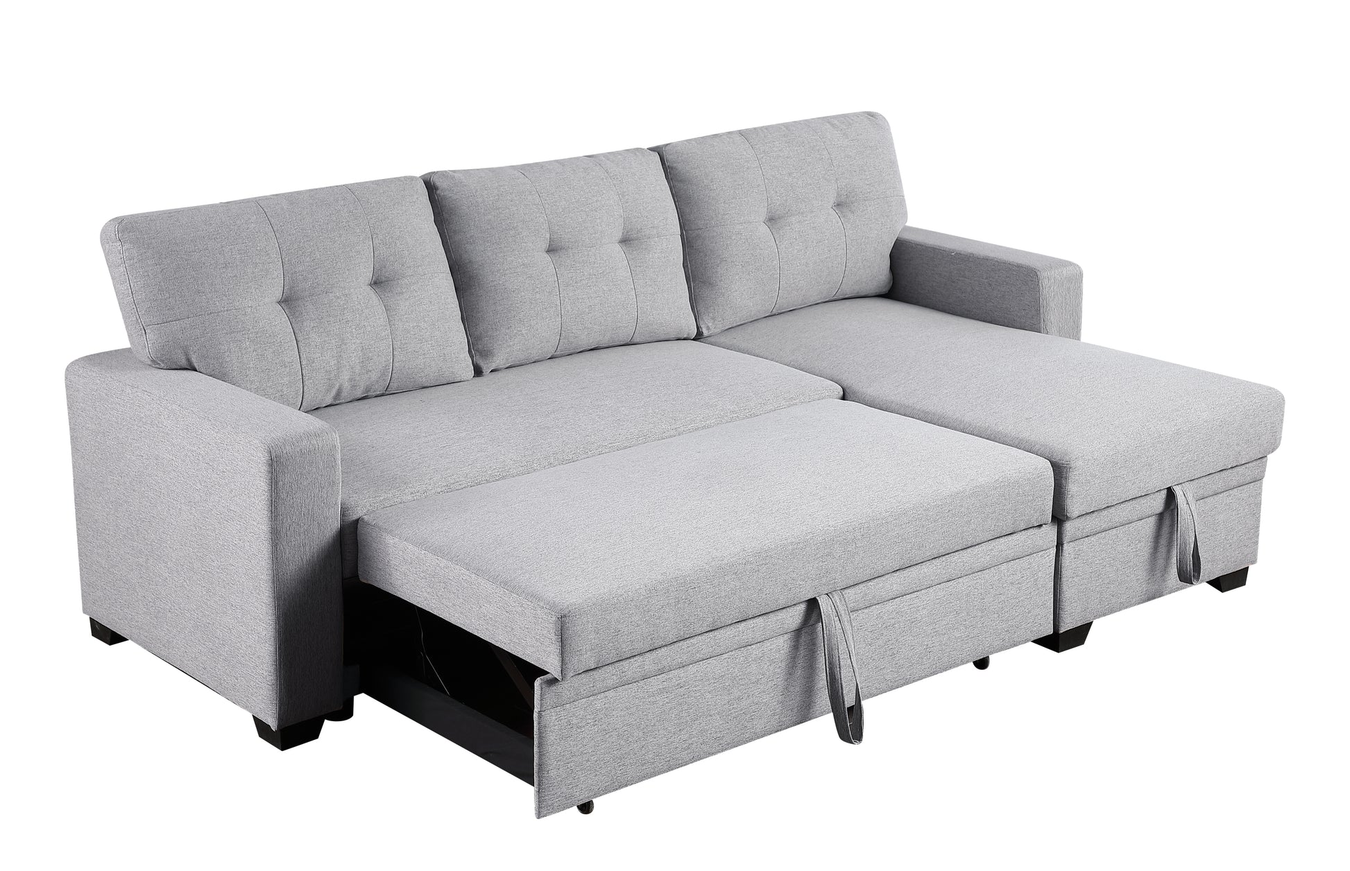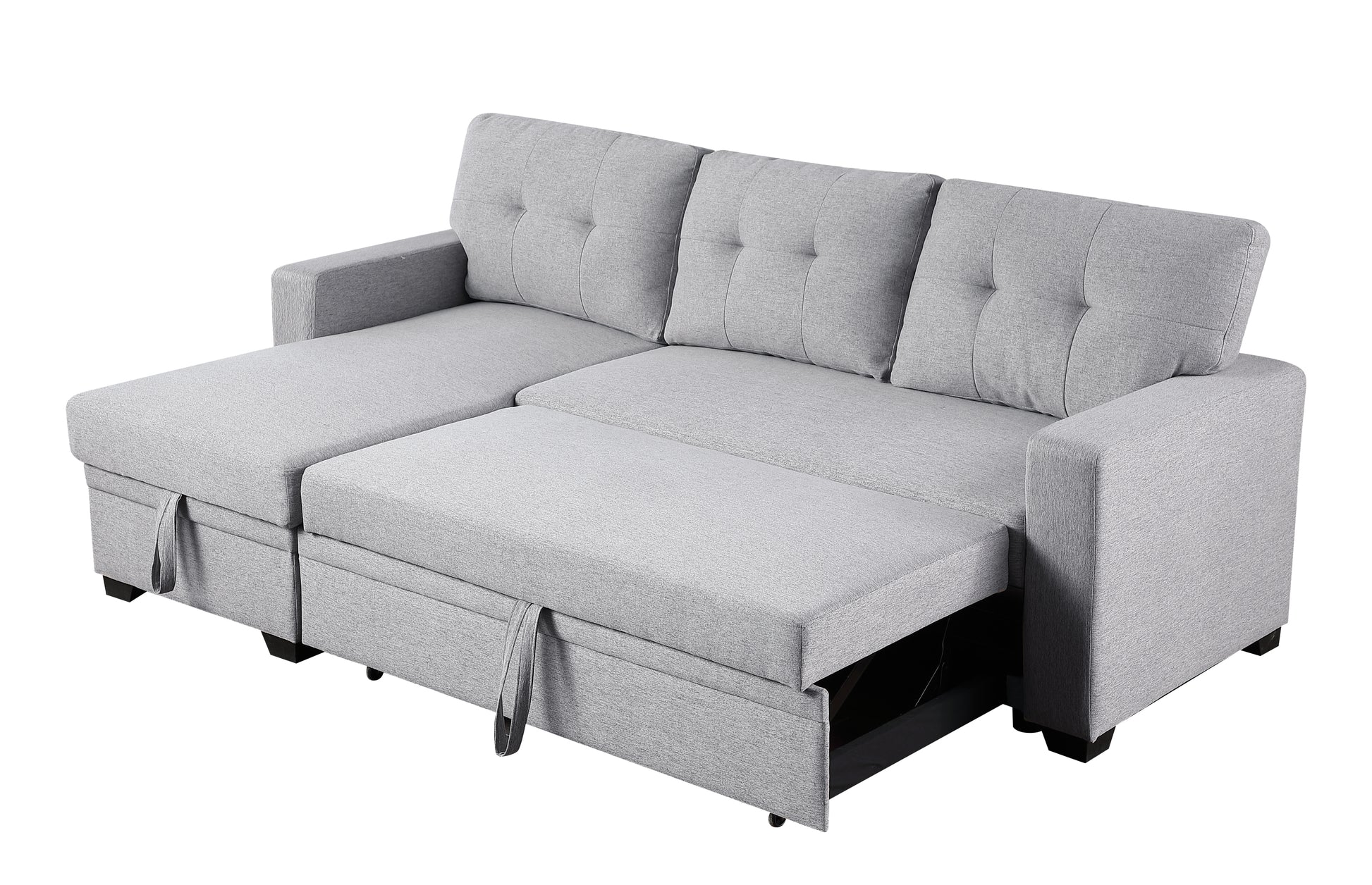 [SantaChoice] Upholstered Pull out Sectional Sofa with Chaise