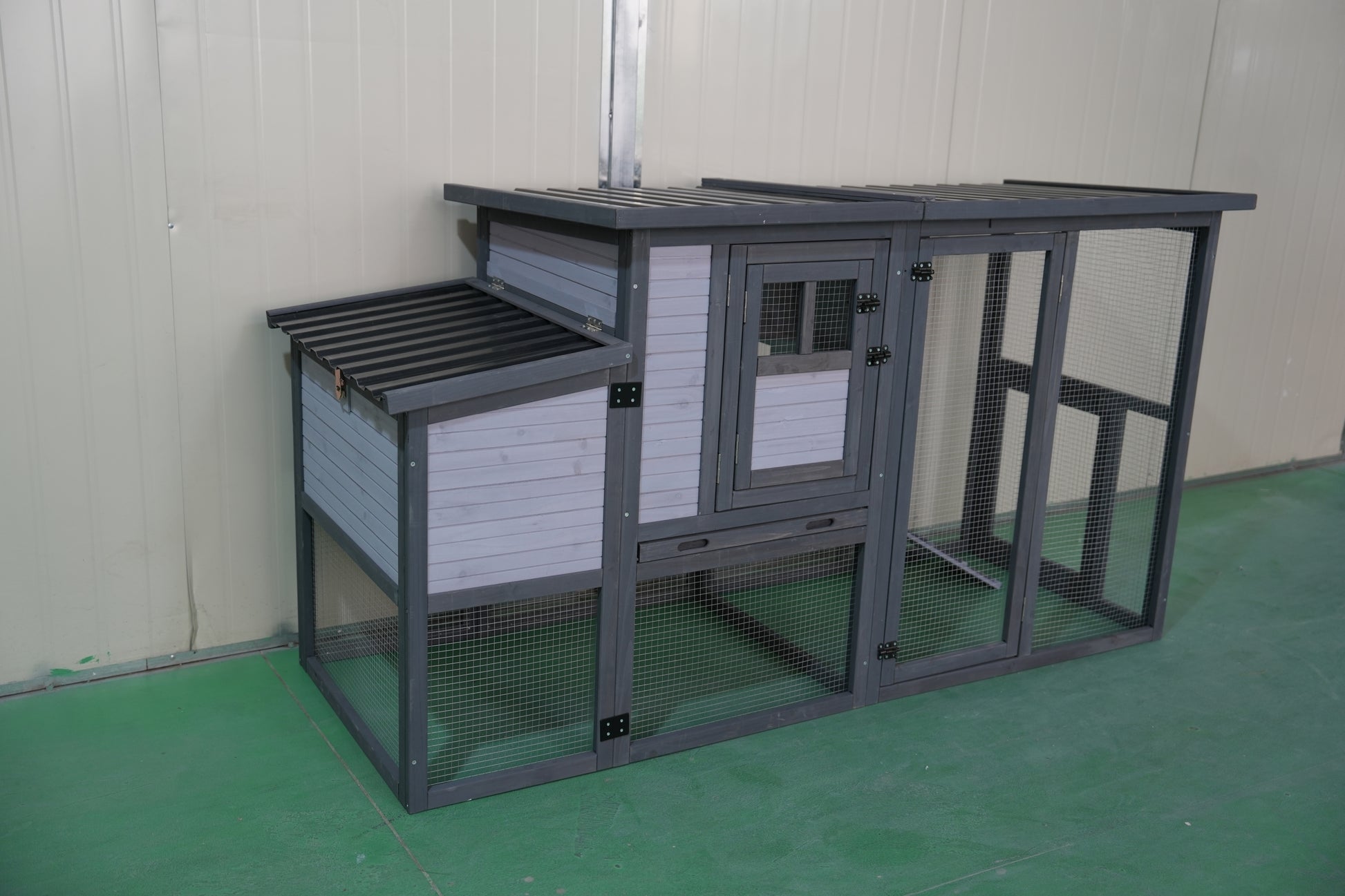 - Durable Weather-resistant Wooden Coop: Made of thick solid fir, eco-friendly paint, and stainless steel hardware. Rainproof asphalt roof ensures durability and protects pets from weather