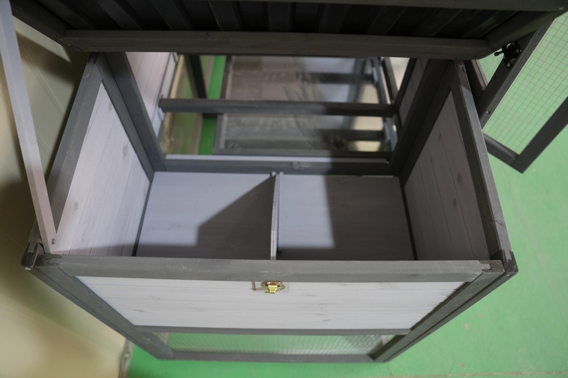 - Chicken Nesting Box: Luxury coop with built-in nesting box measuring 14"x23"x15".Open asphalt roof and metal lock for easy egg access and predator protection,side nest box with removable dividers that are spacious enough for 2 hens to lay