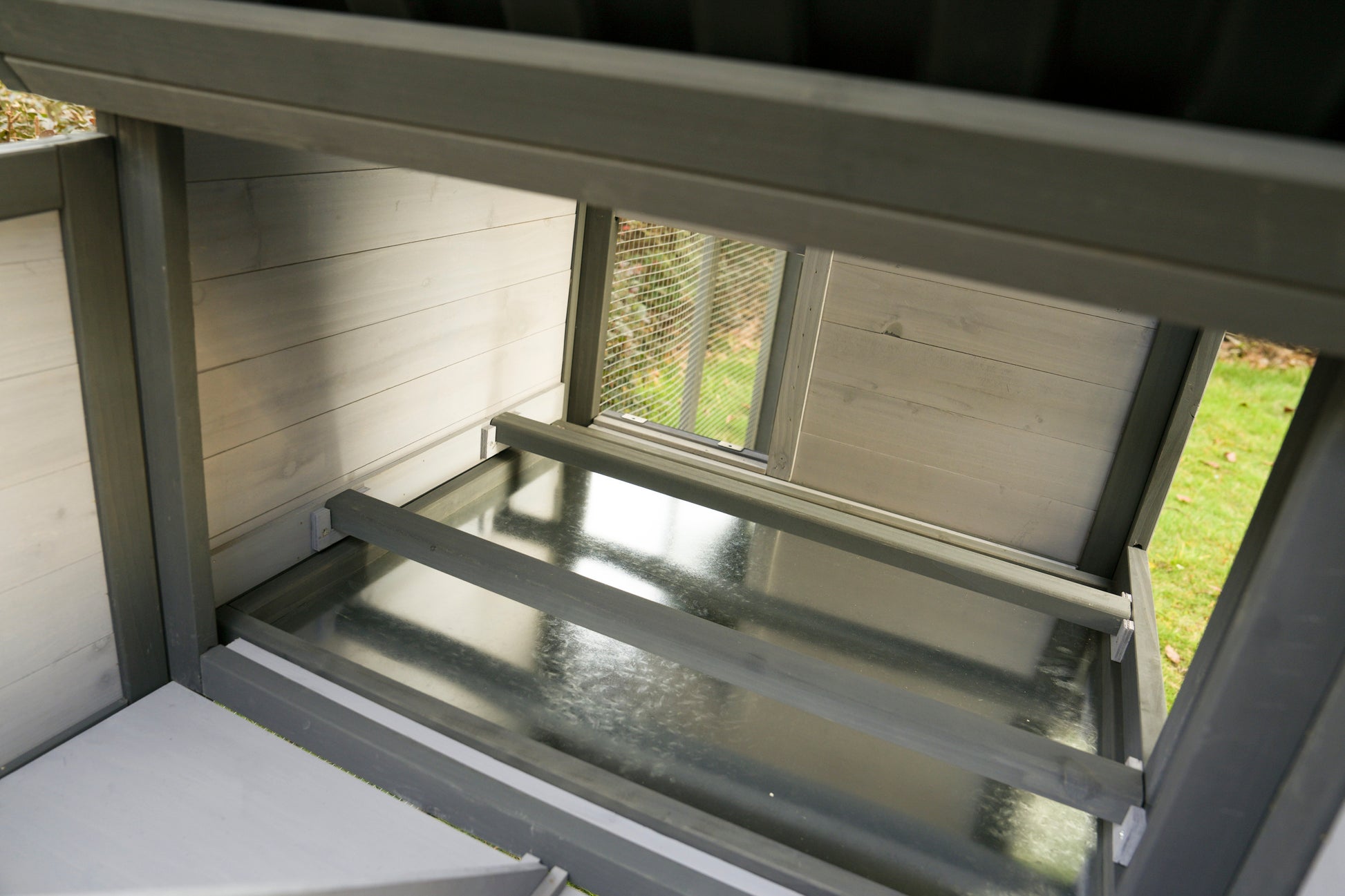 - Secure Housing & Easy Cleaning:This chicken house has open asphalt roof, detachable bottom plate for easy cleaning, and 3 access areas for pet retrieval. Access points connect to doors for secure housing, ensuring pet safety