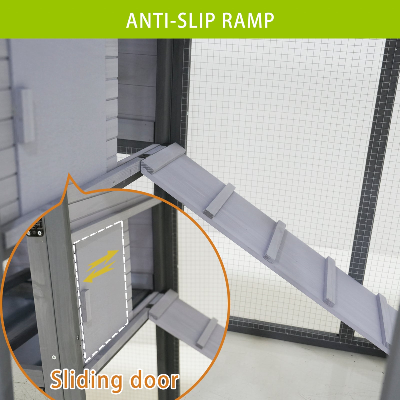 - Upgraded Perches: Eco-friendly chicken coop has two widened, thickened wooden perches to sensitive protect feet and three side vents for good air circulation, promoting chicken health and productivity