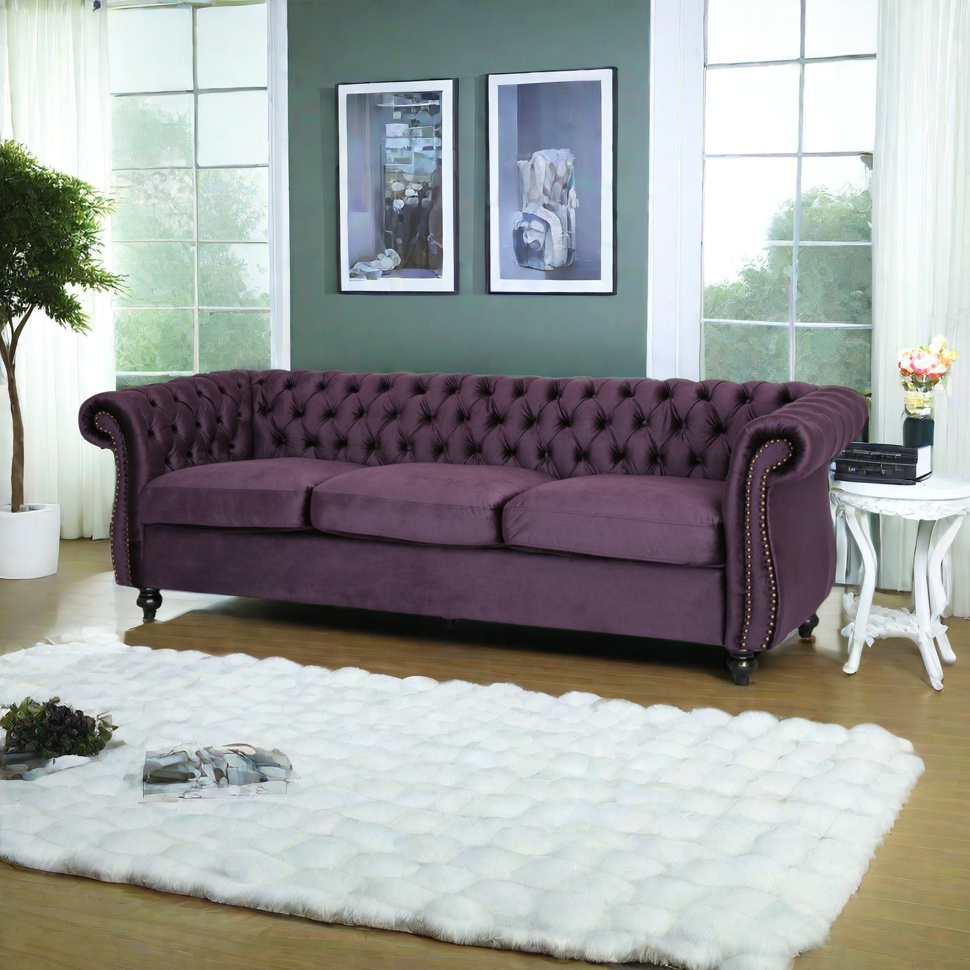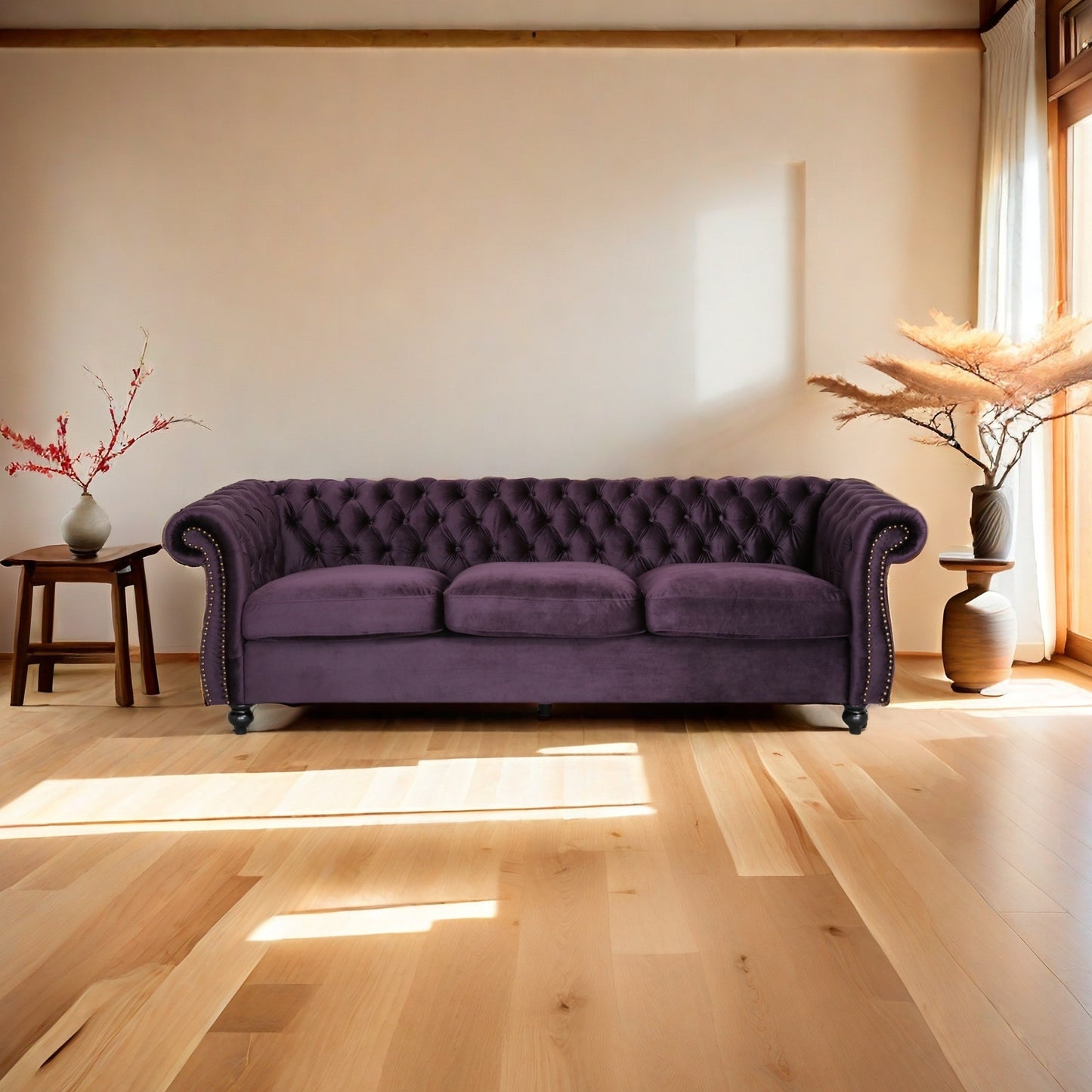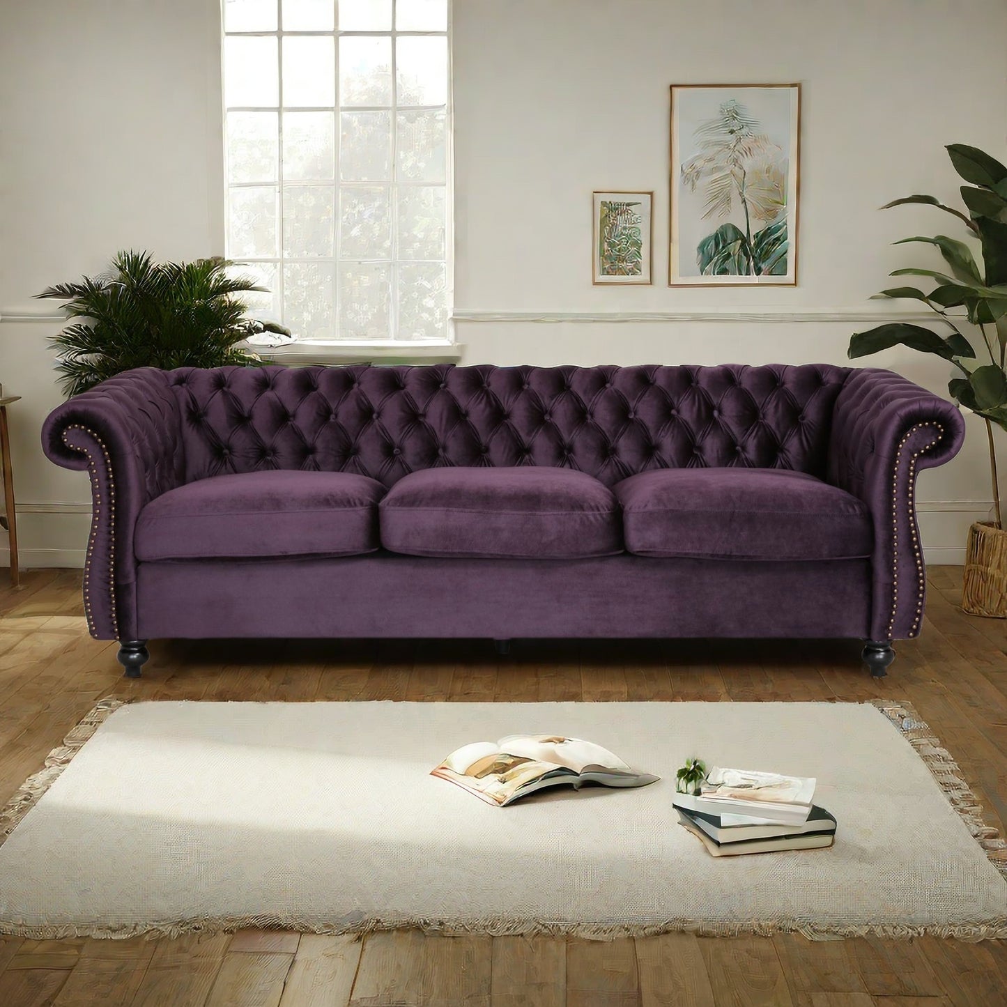 [SantaChoice] Luxurious 3-Seater Purple Velvet Sofa, Featuring a Classic Design with Modern Elegance, Perfect for Adding Sophistication and Style to Any Living Room, Plush Comfort and Durable Craftsmanship