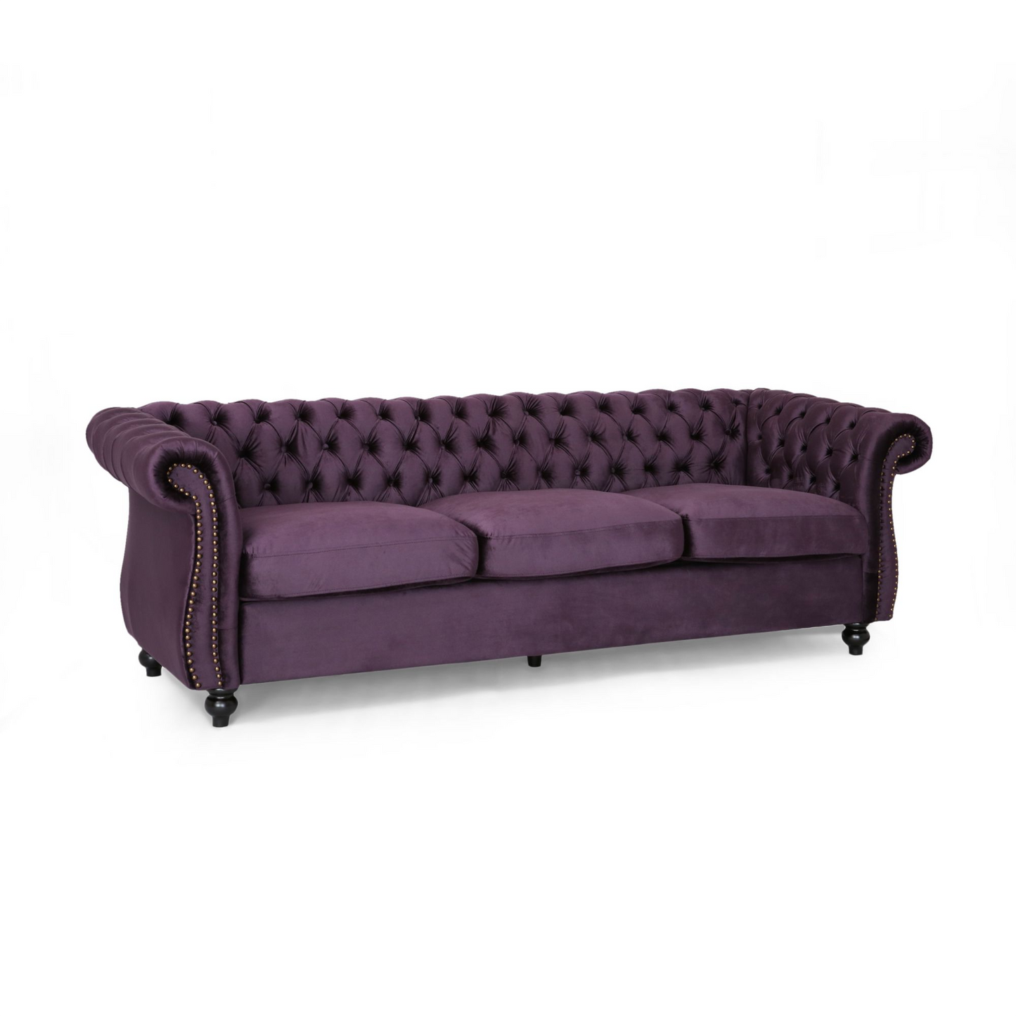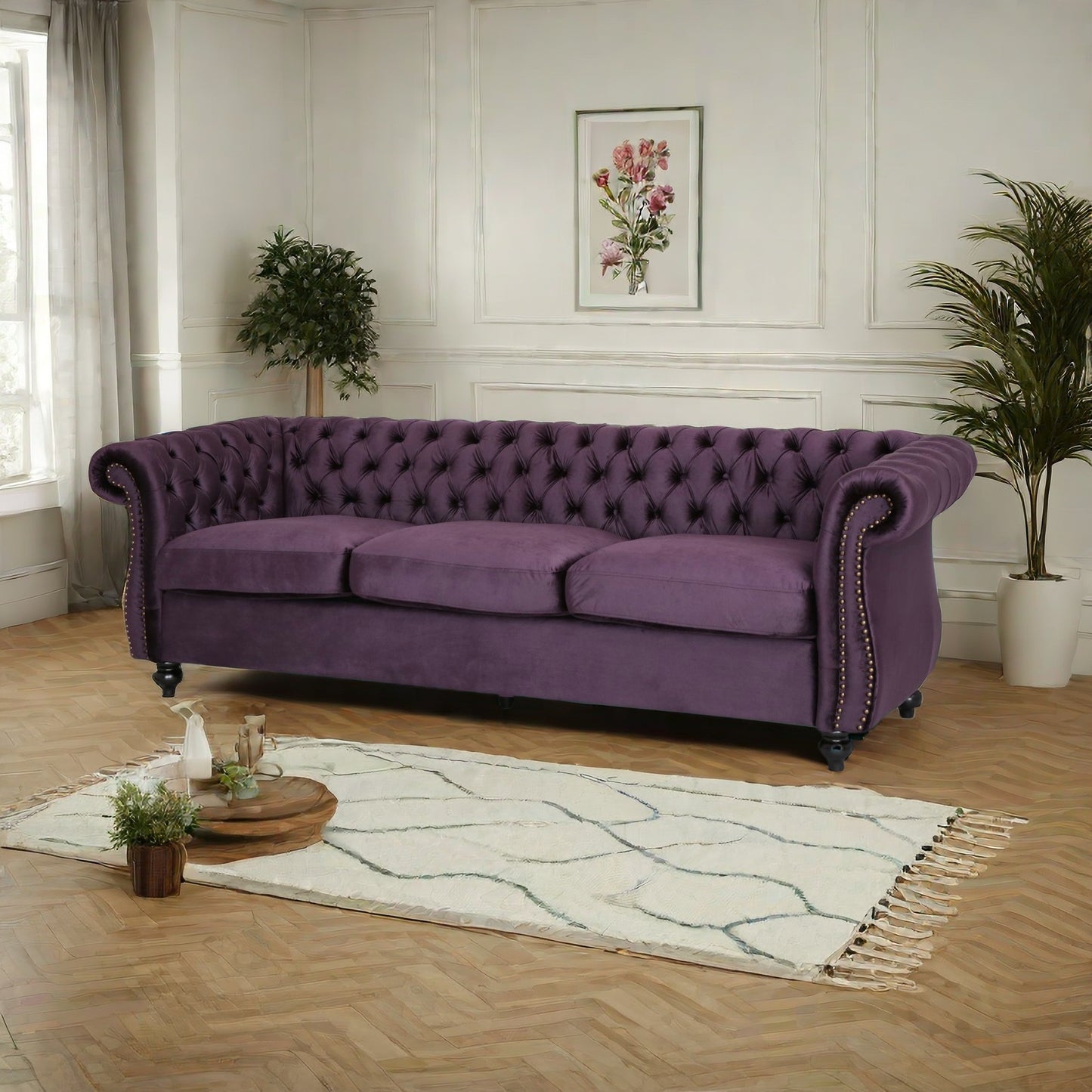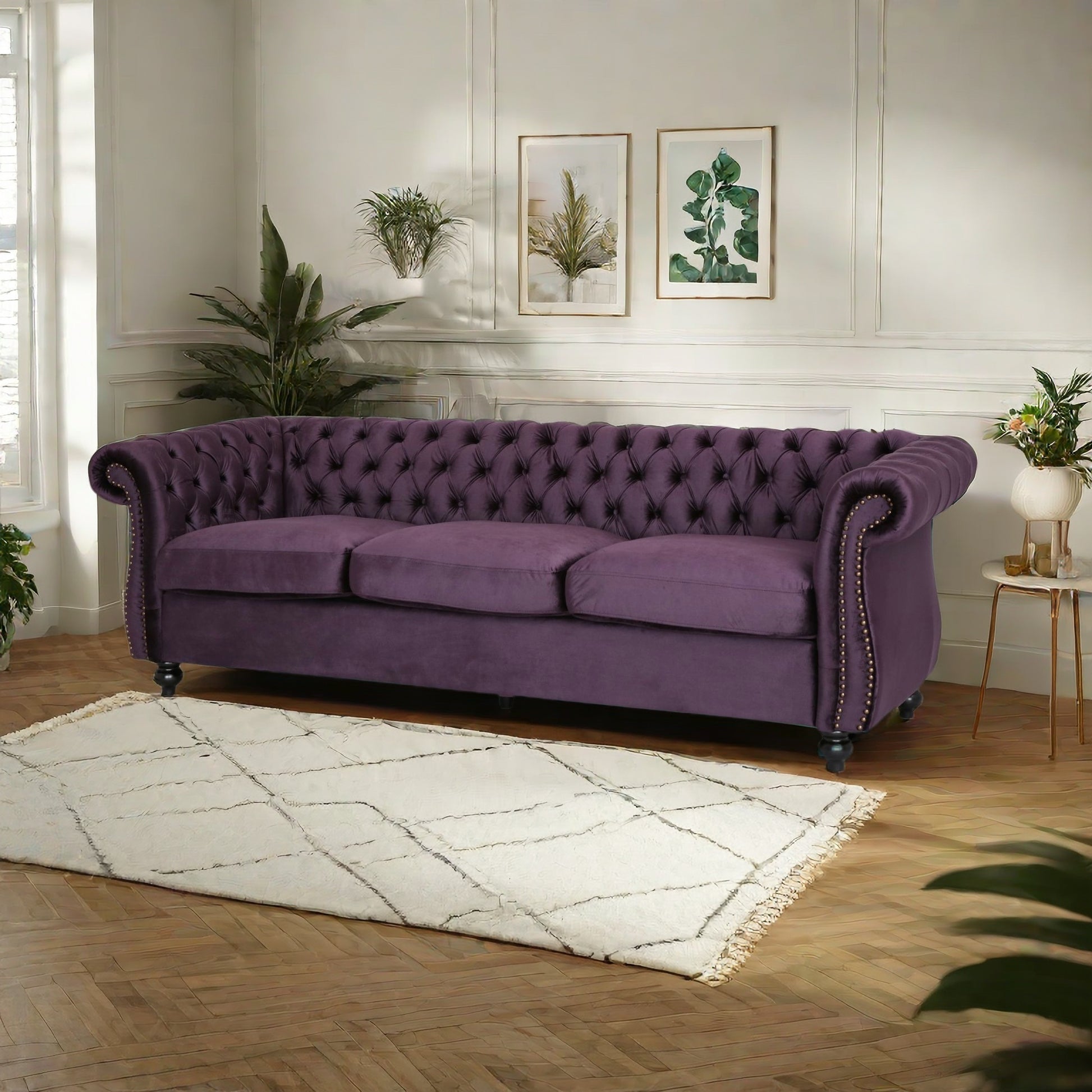 [SantaChoice] Luxurious 3-Seater Purple Velvet Sofa, Featuring a Classic Design with Modern Elegance, Perfect for Adding Sophistication and Style to Any Living Room, Plush Comfort and Durable Craftsmanship