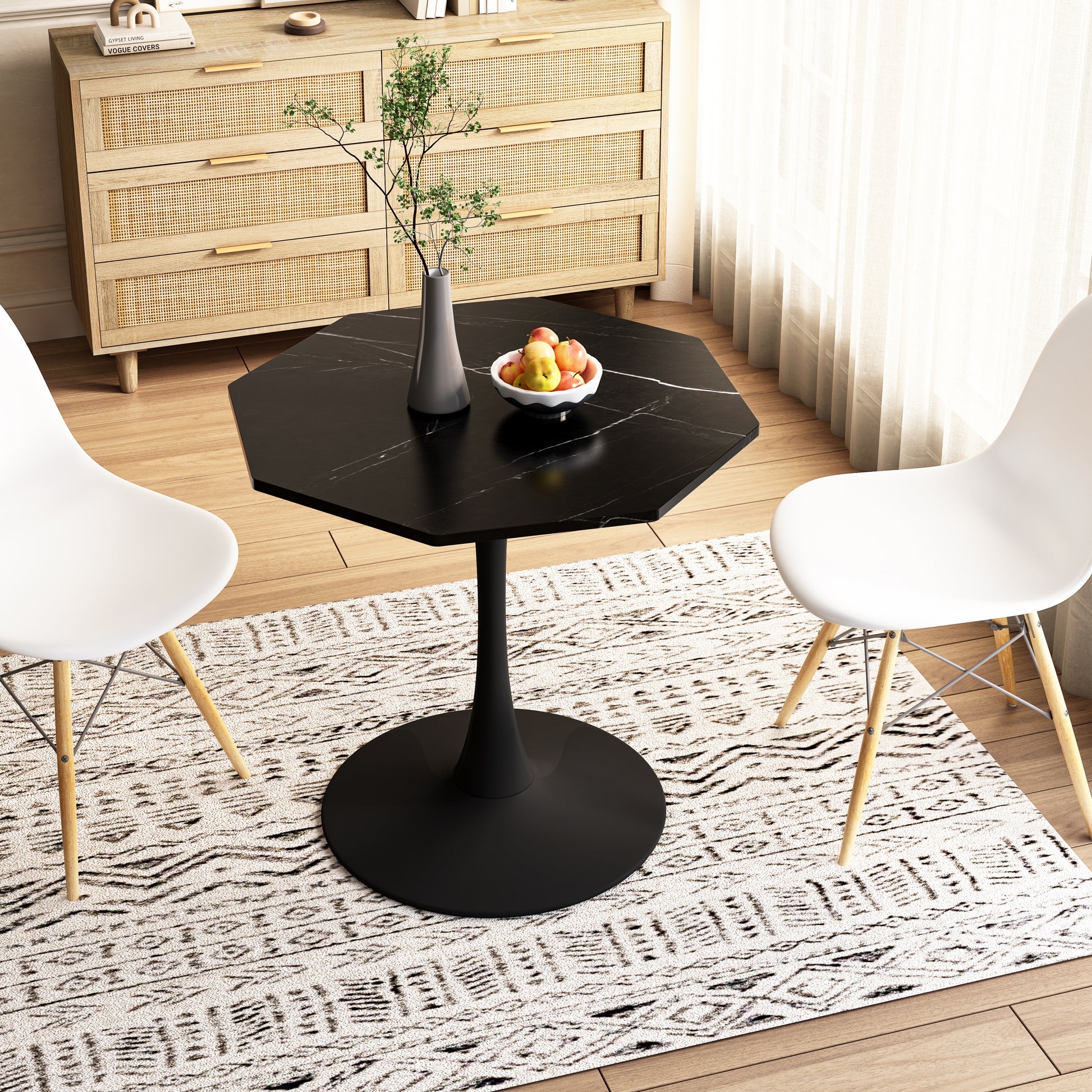 31.50"Modern Octagonal Coffee Table with Printed Black Marble Table Top,Metal Base, for Dining Room, Kitchen, Living Room