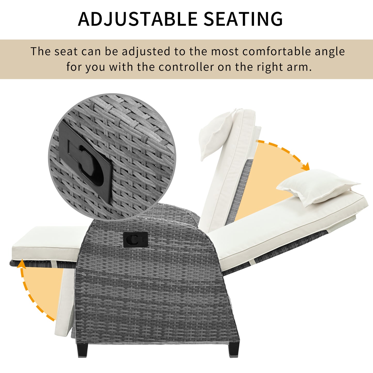 U_Style Outdoor Rattan Two-person Combination With Coffee Table, Adjustable, Suitable For Courtyard, Swimming Pool, Balcony