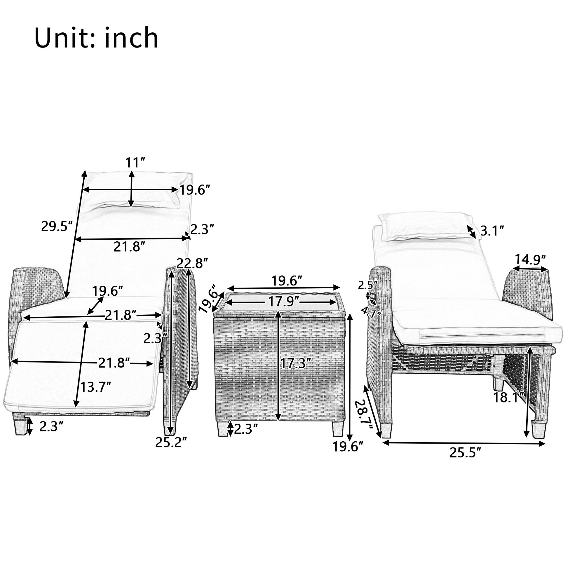 | Single Chair Size(Highest) | 25.5''x28.7''x44'' |