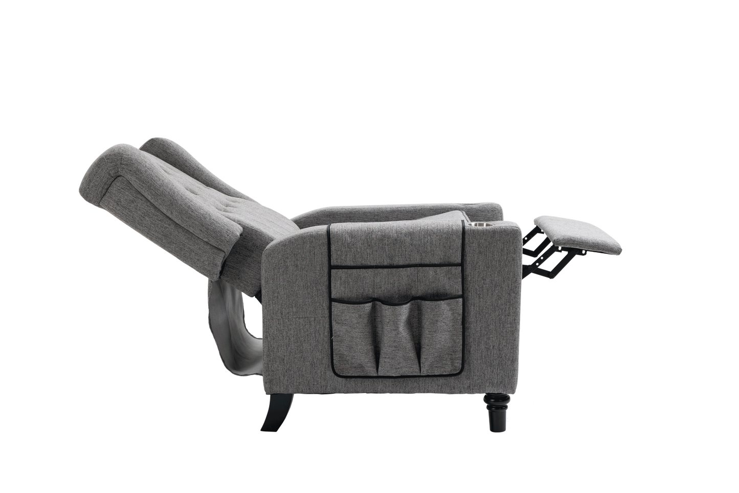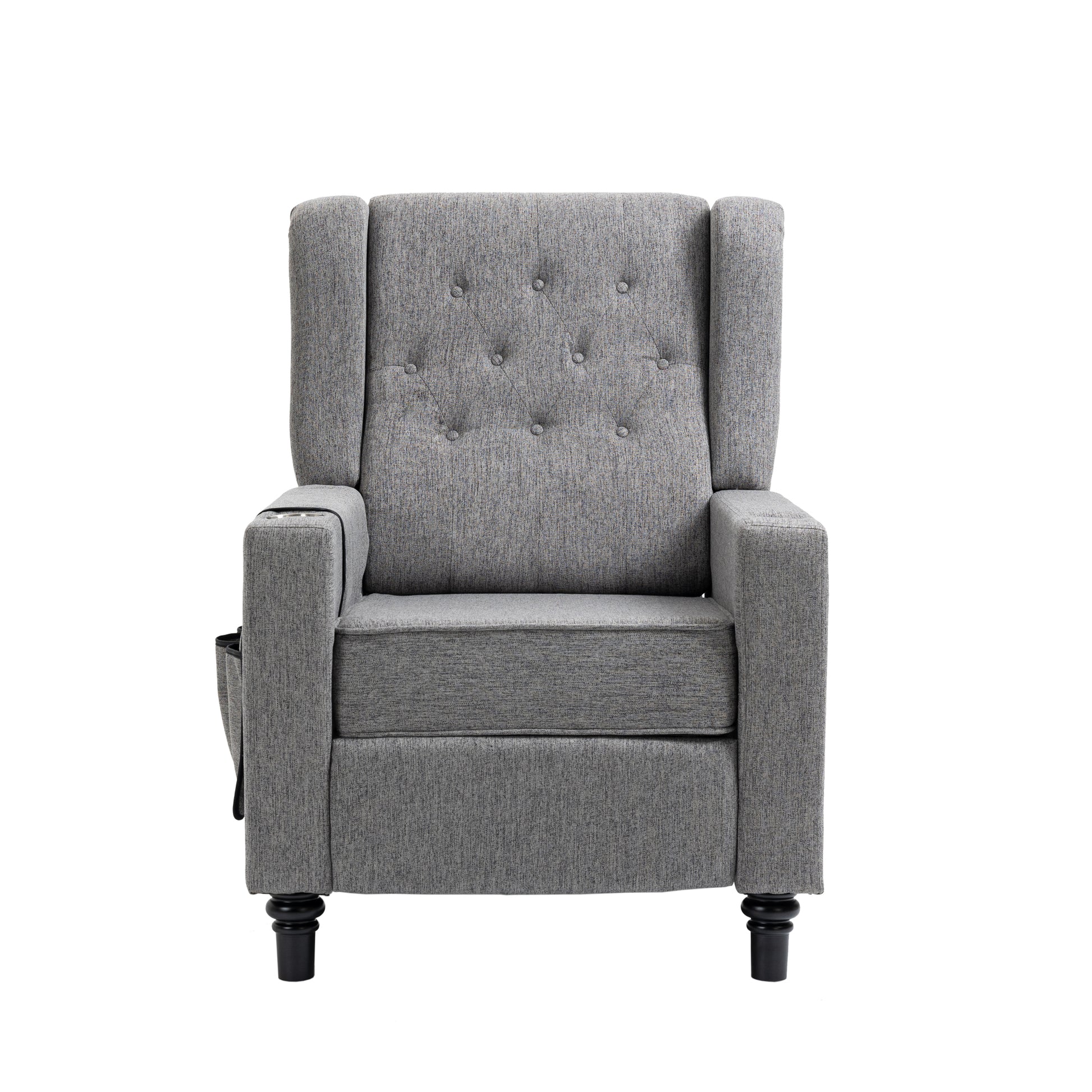 Arm Pushing Recliner Chair, Modern Button Tufted Wingback Push Back Recliner Chair, Living Room Chair Fabric Pushback Manual Single Reclining Sofa Home Theater Seating for Bedroom,Dark Gray