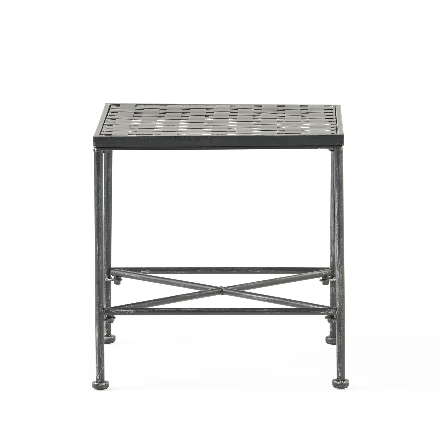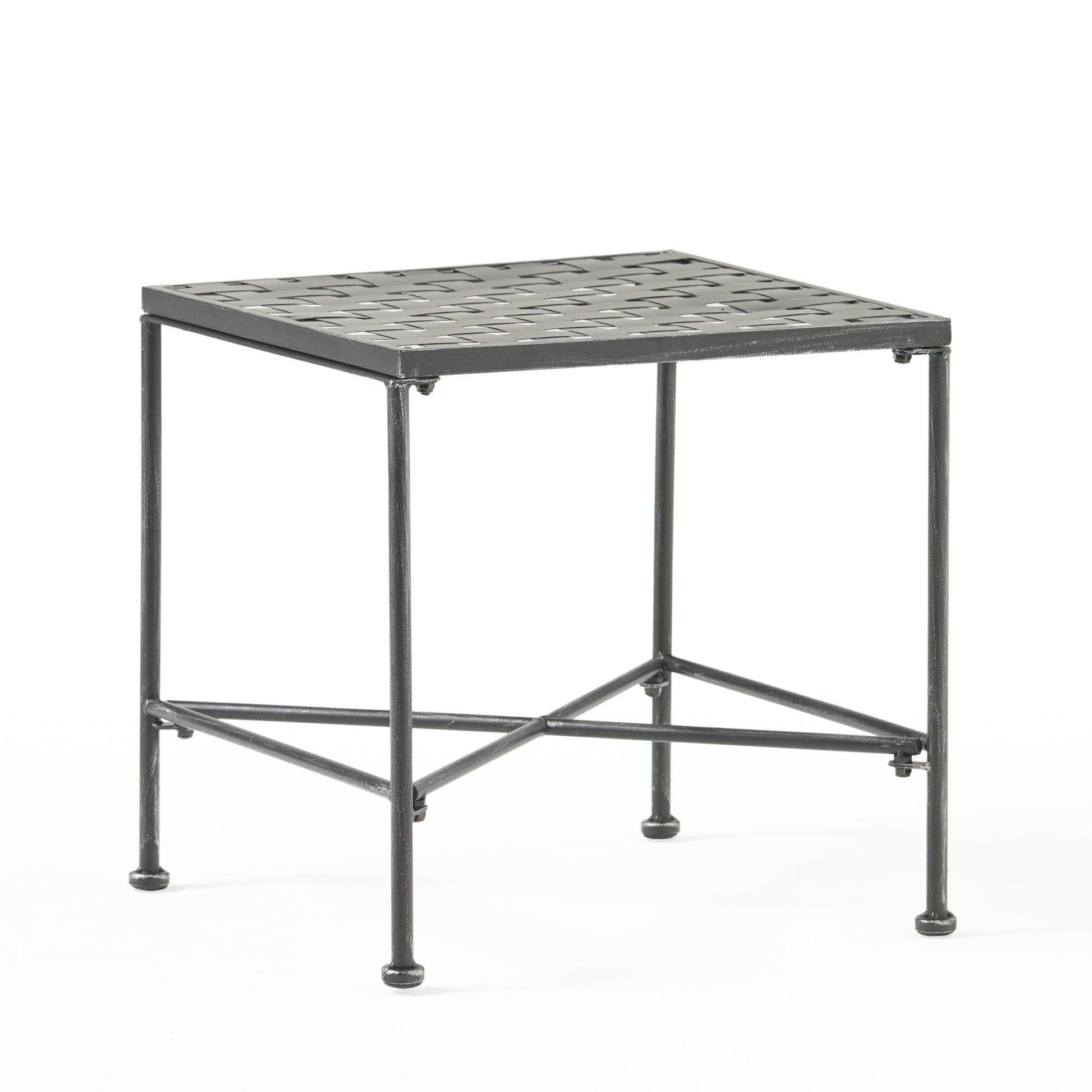 - Mix and match with this iron end table. You can pair this end table with almost any set of chairs, loveseats, or coffee tables for your outdoor patio. This table is sure to last you for years to come, and will look good even if you only plan on using it as a side table for the family BBQ.