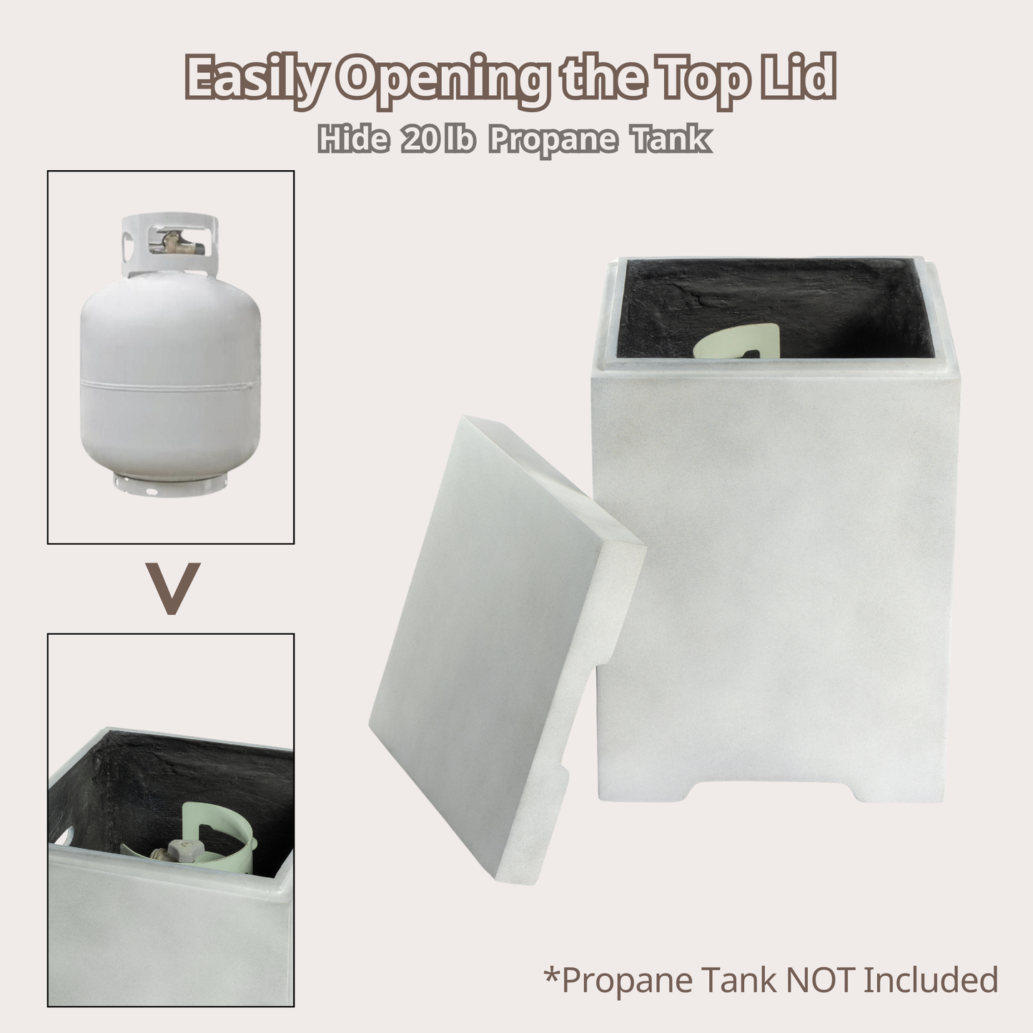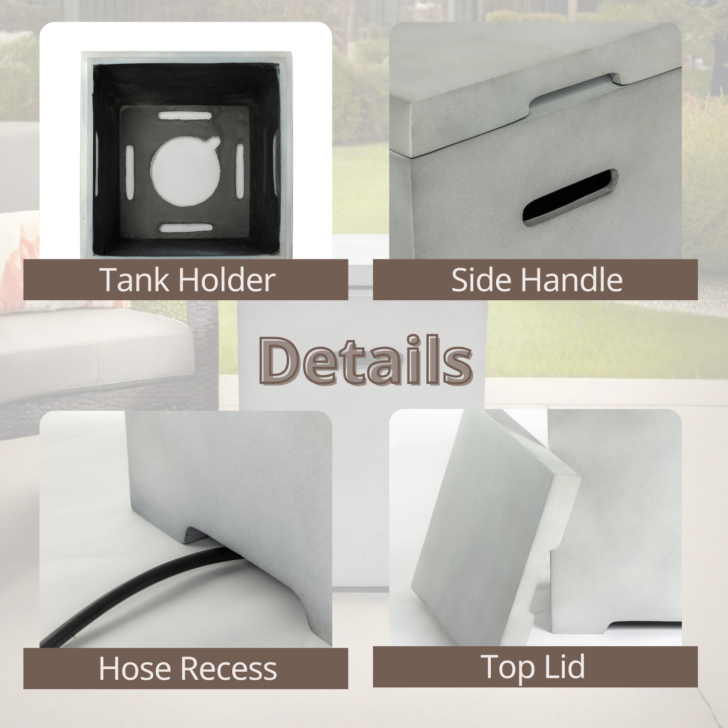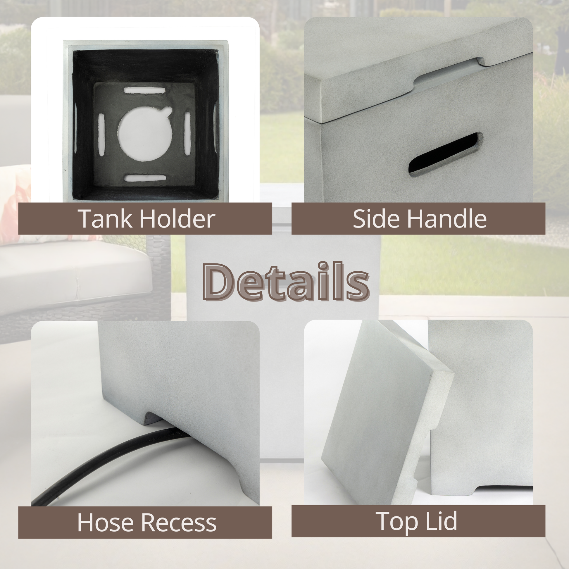 Outdoor Tank Table for Gas Fire Pits, Hides Propane Tank Cover, Concrete Light Gray, Side Handles