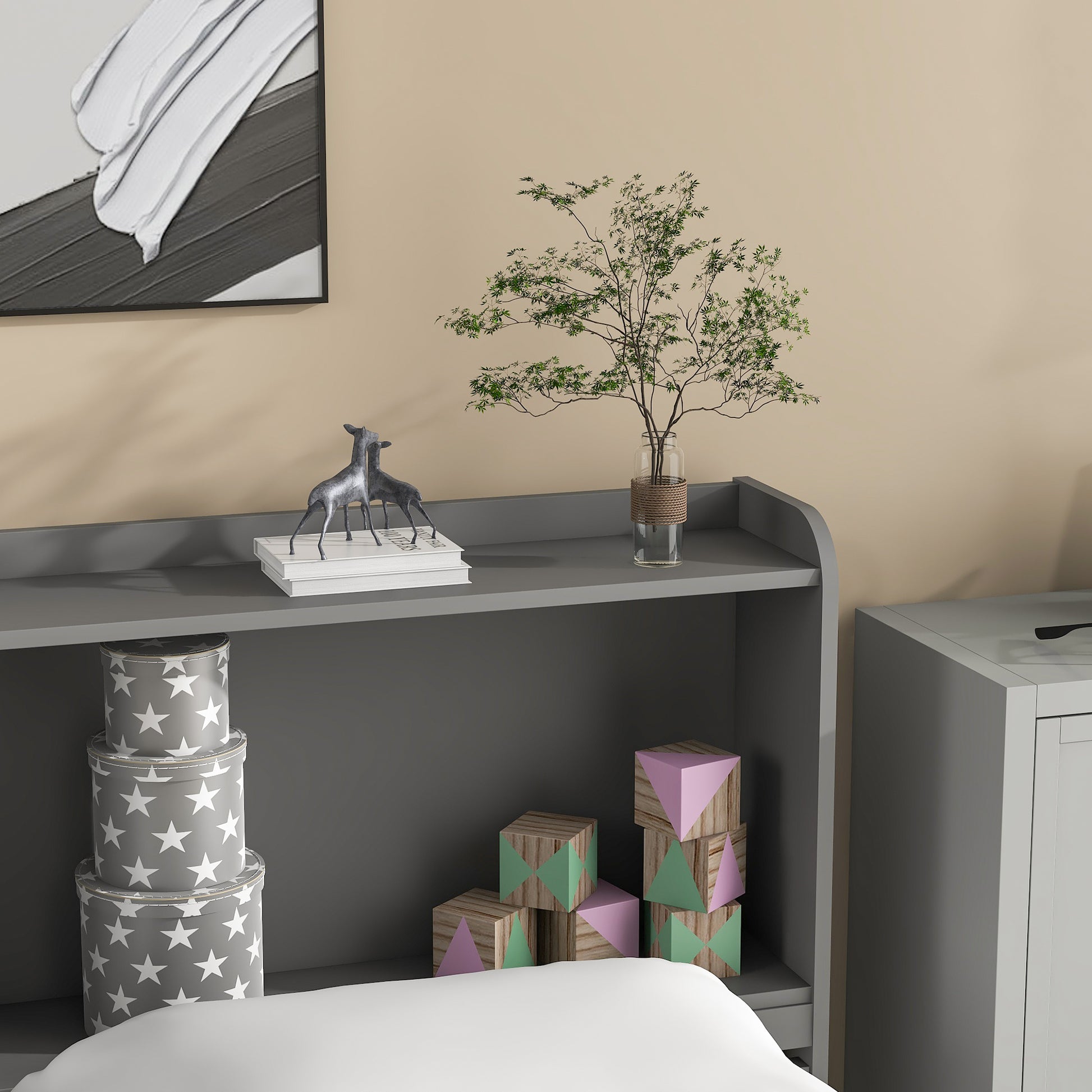 Full Bed with Bookcase,Twin Trundle,Drawers,Grey