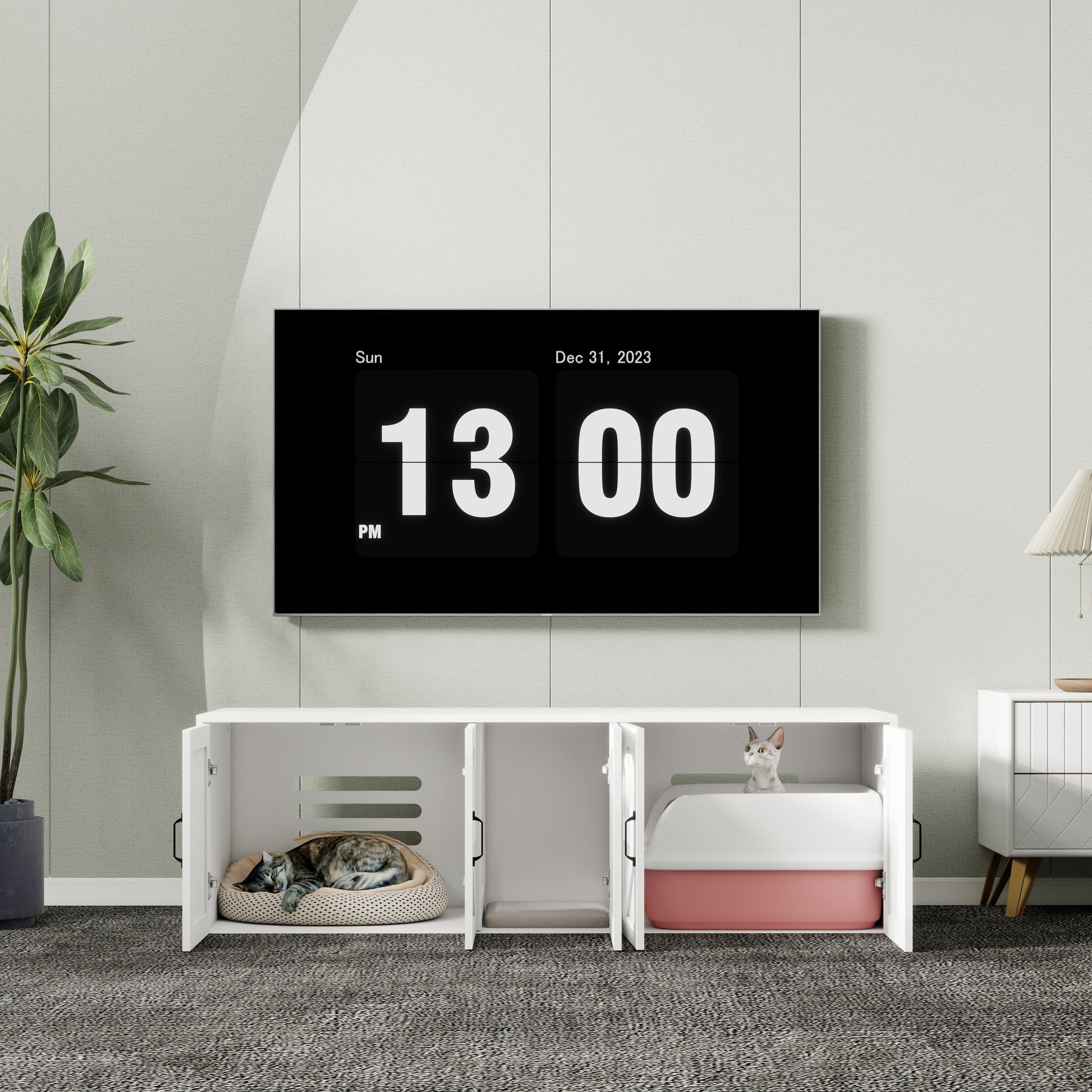 - Modern design:The white litter box is fashionable in design and suitable for various decoration styles.It can be used not only as a cat house but also as a cat toilet, giving cats the greatest privacy space.Close the door to block cat litter, and open the door to facilitate cleaning of the litter box enclosure. At the same time, you can also use this furniture as a TV cabinet, coffee table, etc., and place accessories on it to decorate your house.