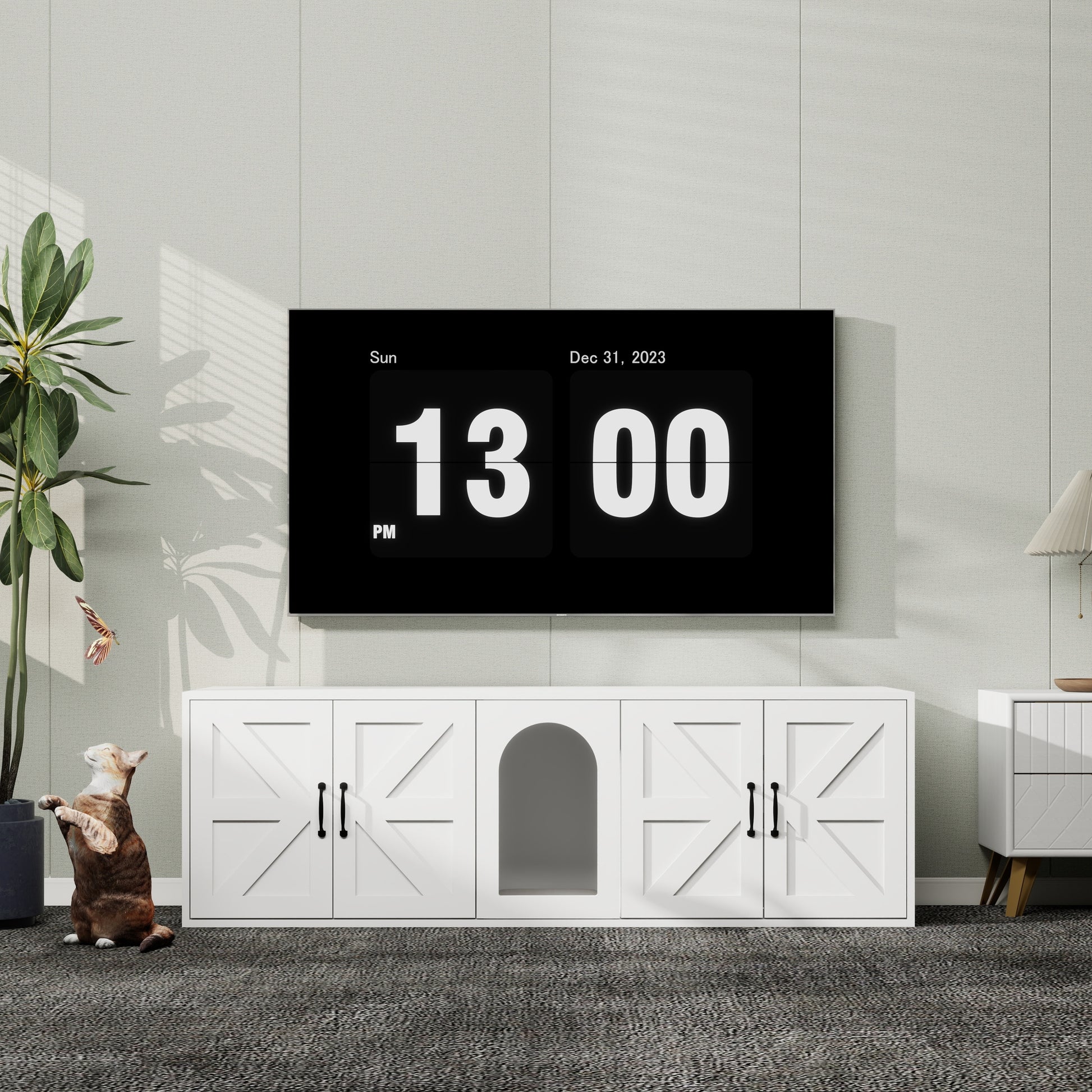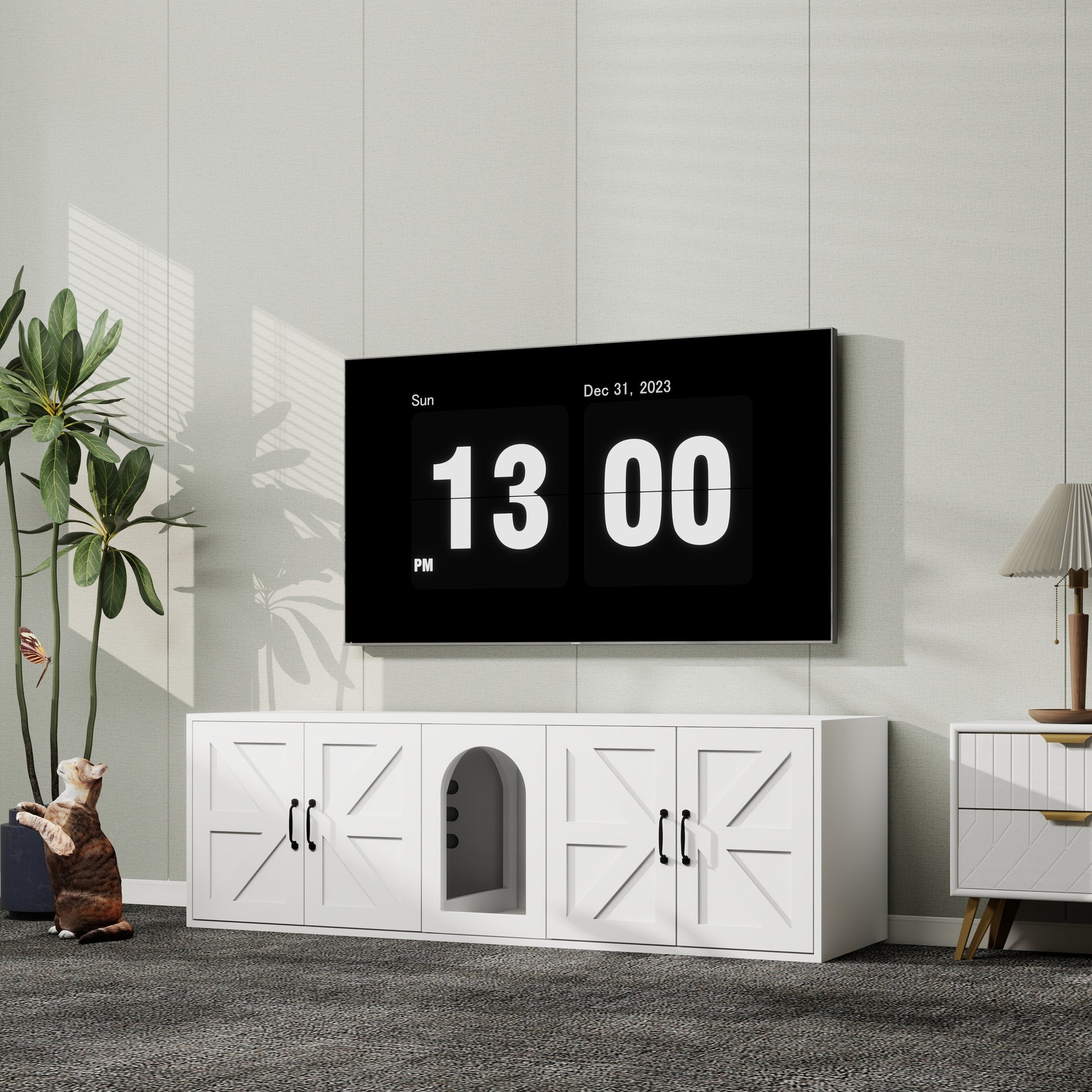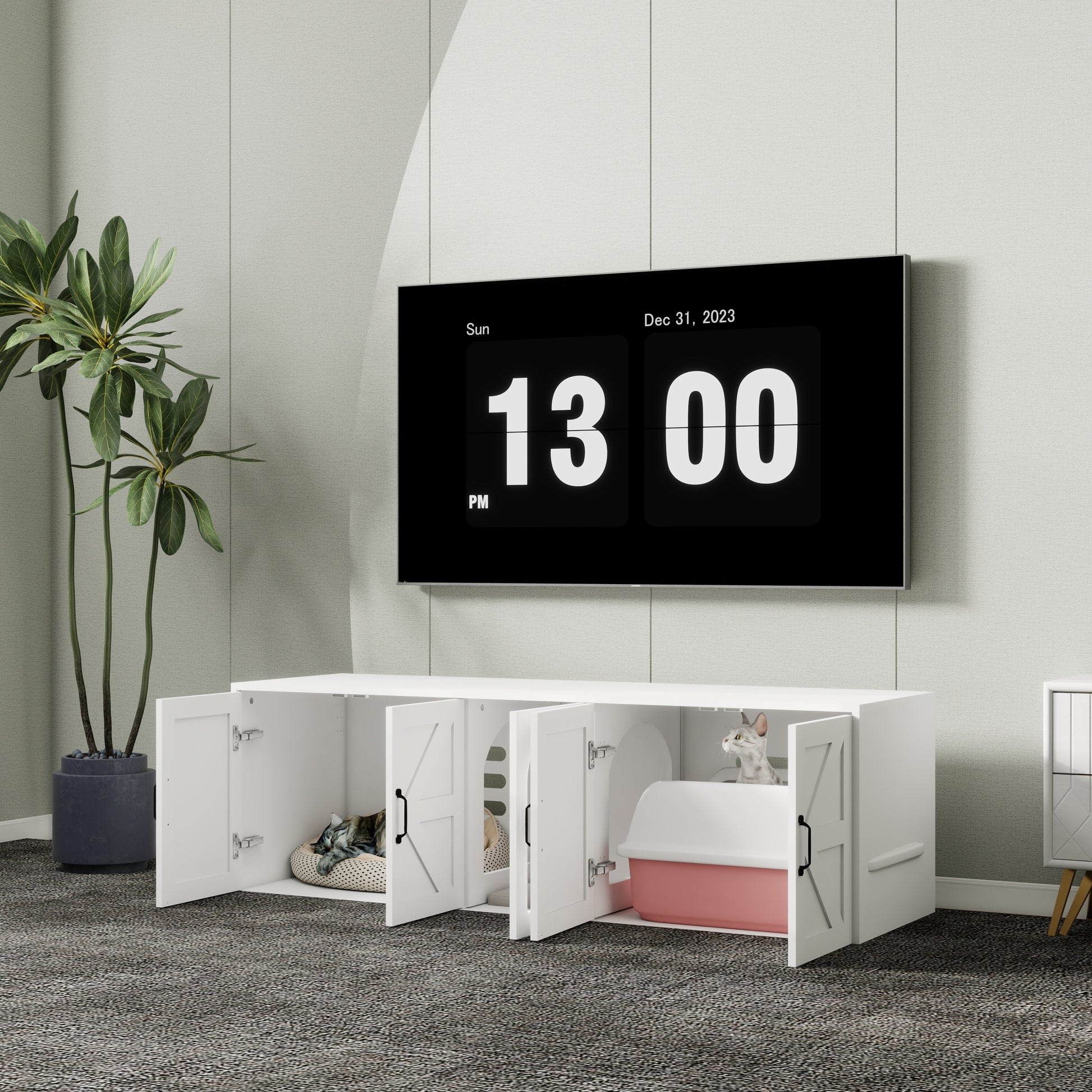 Litter Box Enclosure for 2 Cats, Modern Cat Litter Box Furniture with Double Room, Wooden Litter Box Furniture with Cat Door, 59.05"L x 17.71"W x 18.89"H-White
