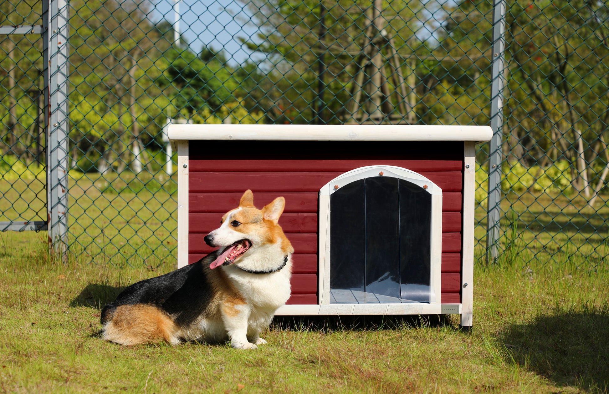 Medium Wooden Outdoor Dog House, Waterproof Roof, Elevated Floor, Adjustable Plastic Feet, Red
