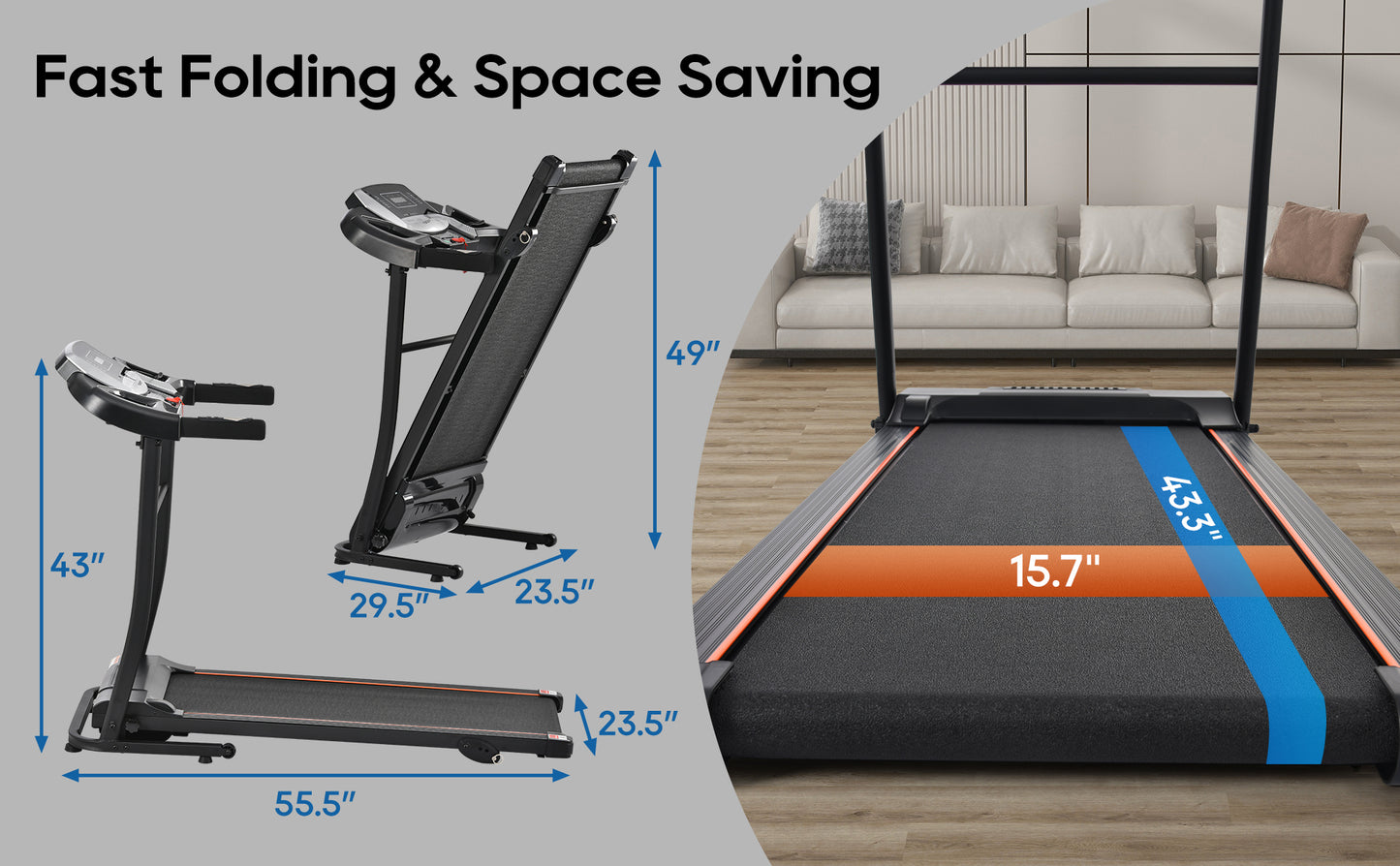 NEW Home Folding Treadmill with Pulse Sensor, 2.5 HP Quiet Brushless Motor , 7.5 MPH, 300LBS Weight Capacity Walking Jogging Machine with 3 Level Incline 12 Preset Programs for Home Gym