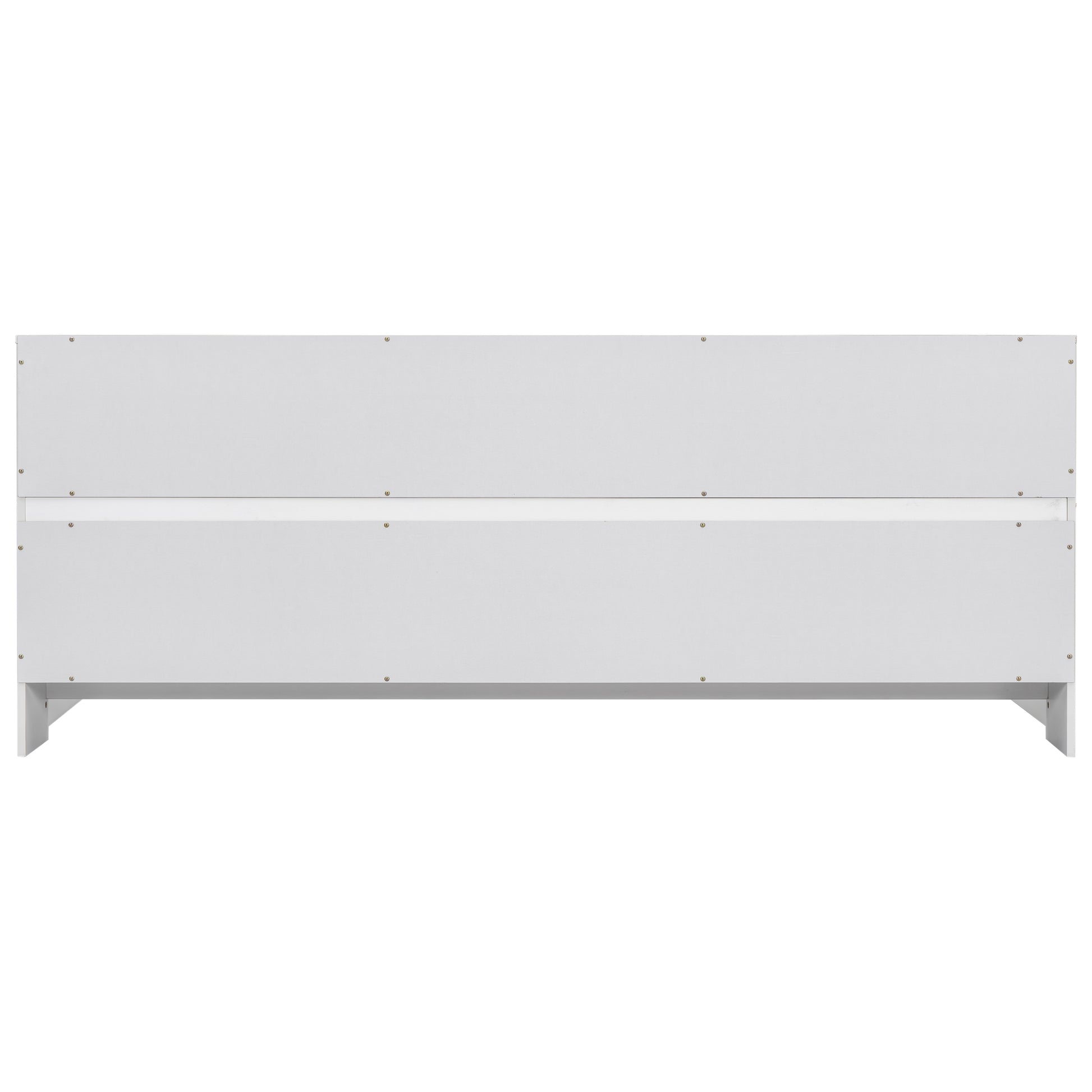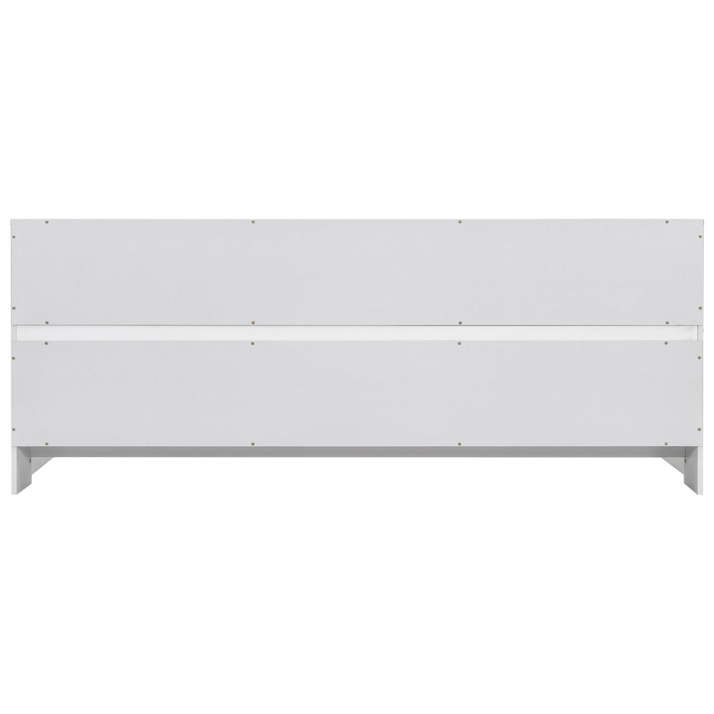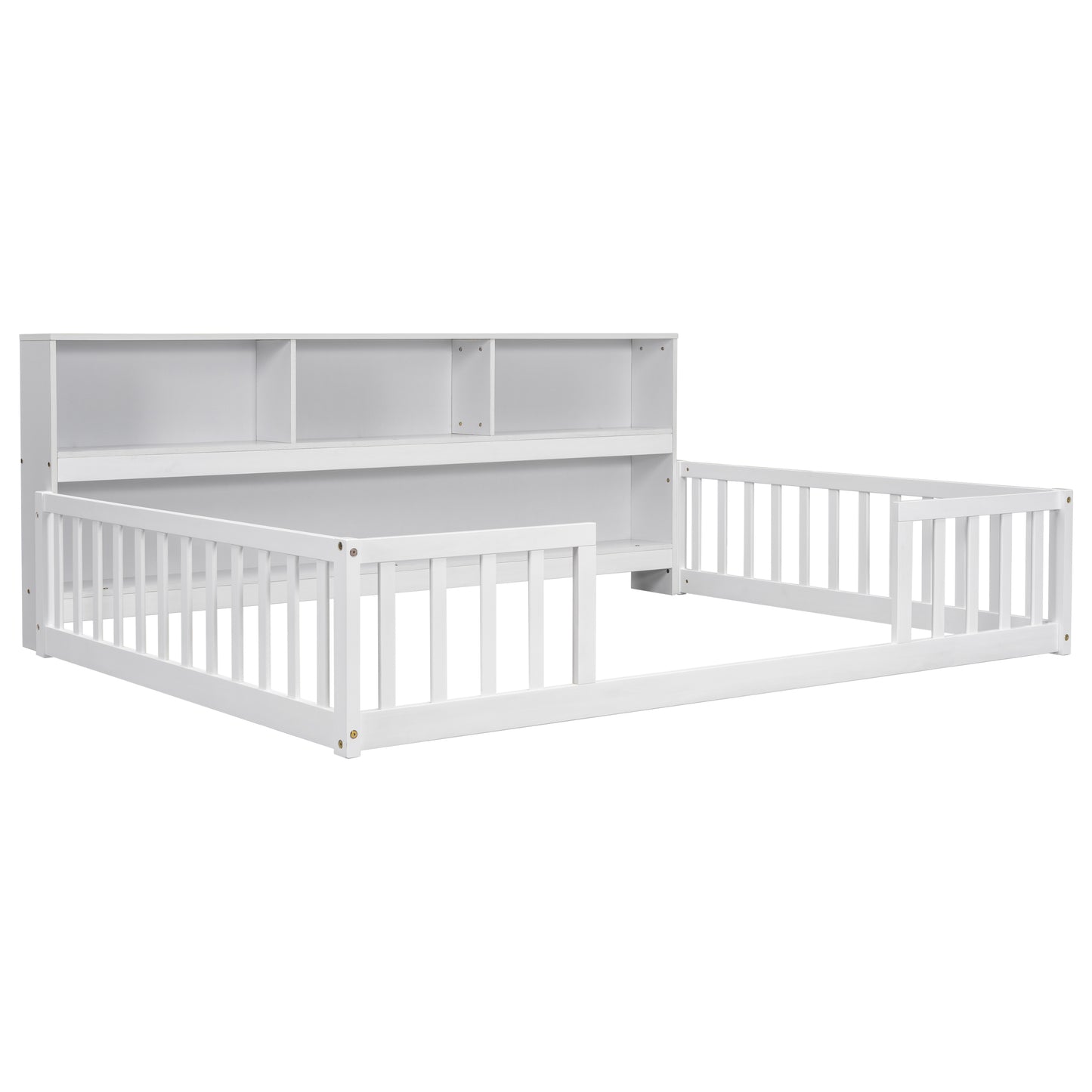 Full Floor Bed with Side Bookcase,Shelves,Guardrails,White