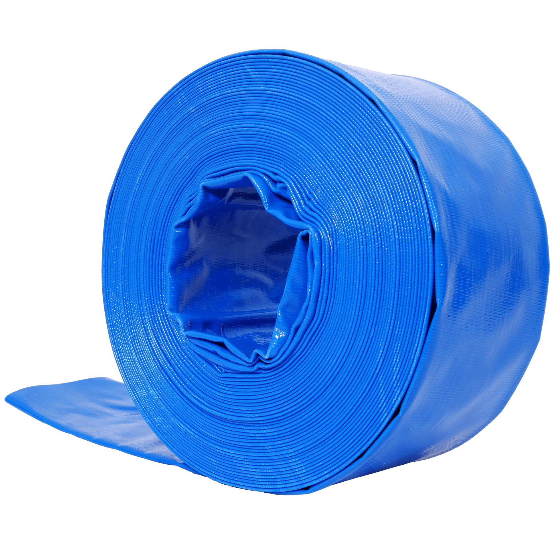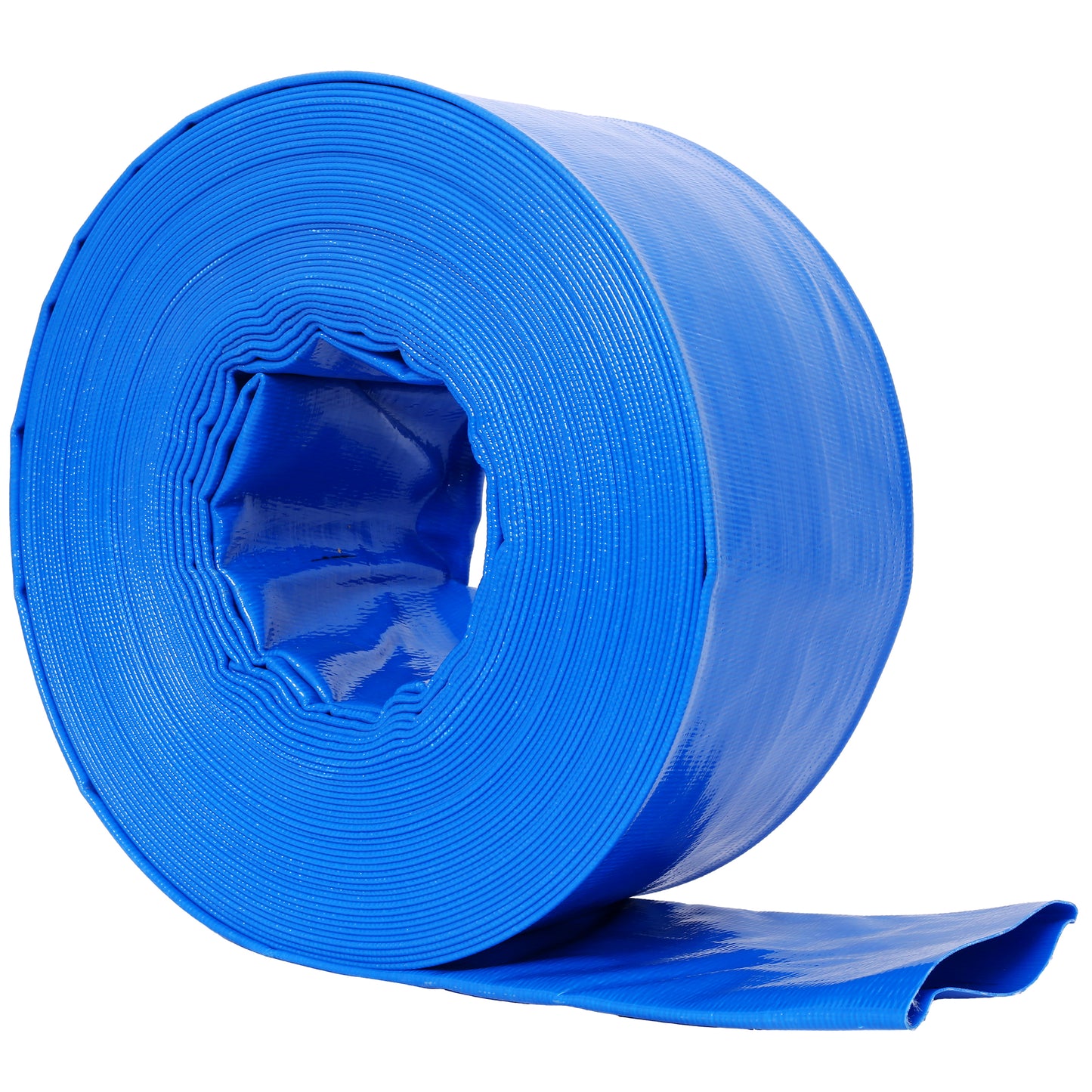 4'x100FT Pool Backwash Hose, Blue Heavy Duty Reinforced PVC Lay Flat Water Discharge Hose for Swimming Pool Filter Pump,with 2 Clamp