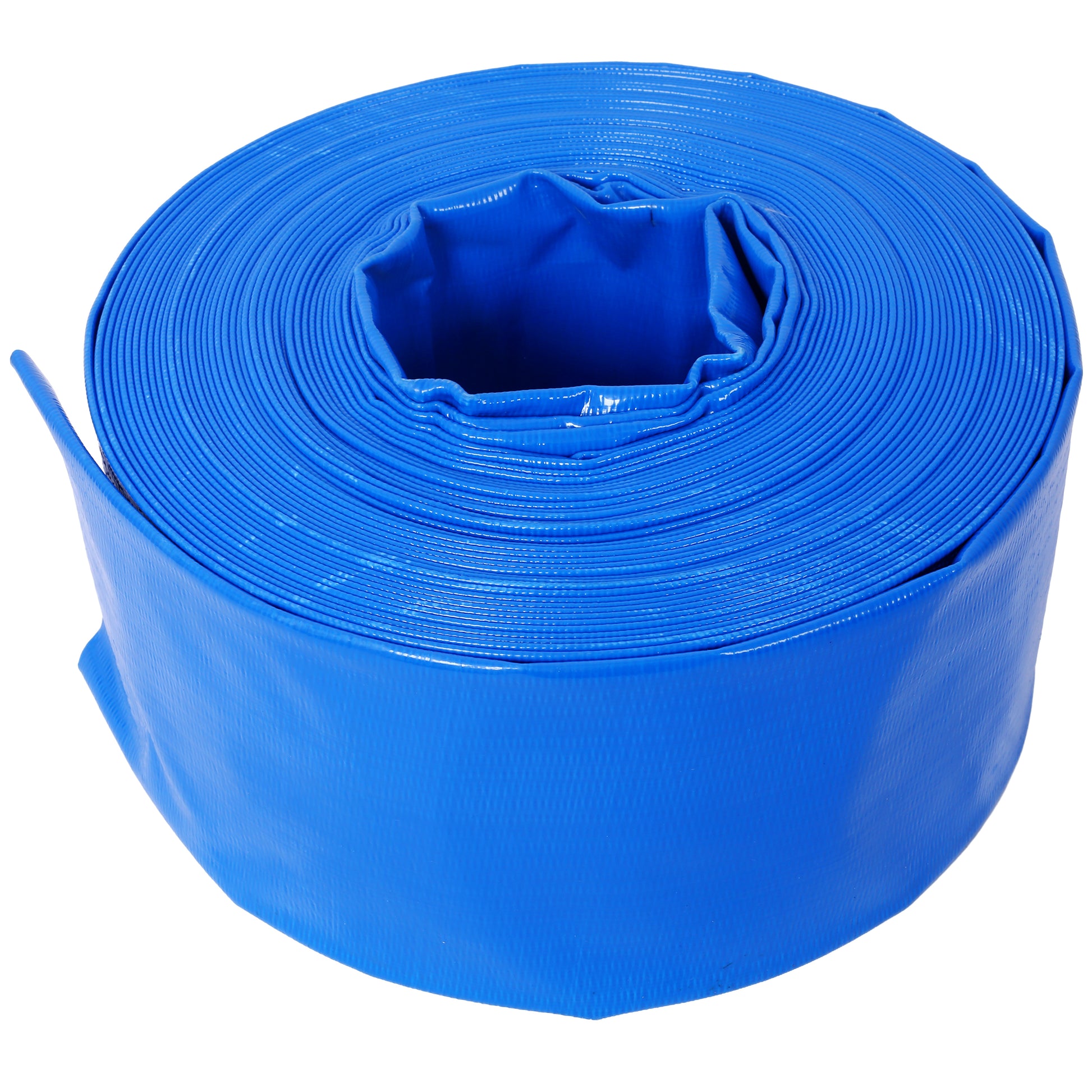 - Backwash and Discharge HoseDiameter: 4 inches Flat Width: 6.4 in Length: 100 feet Working Pressure: 90 PSI Temperature Range: 23°F to 149°F (-5°C to 65°C)Fits: Be sure to measure your equipment outlet to ensure proper fit before ordering. It must be 3 in or less; otherwise, you will need an adaptor.