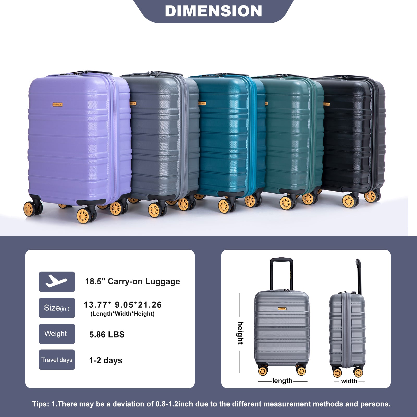 Carry On Luggage Airline Approved18.5' Carry On Suitcase With TSA Approved Carry On Luggage With Wheels Carry on Bag Hard Shell Suitcases, DARK GREY