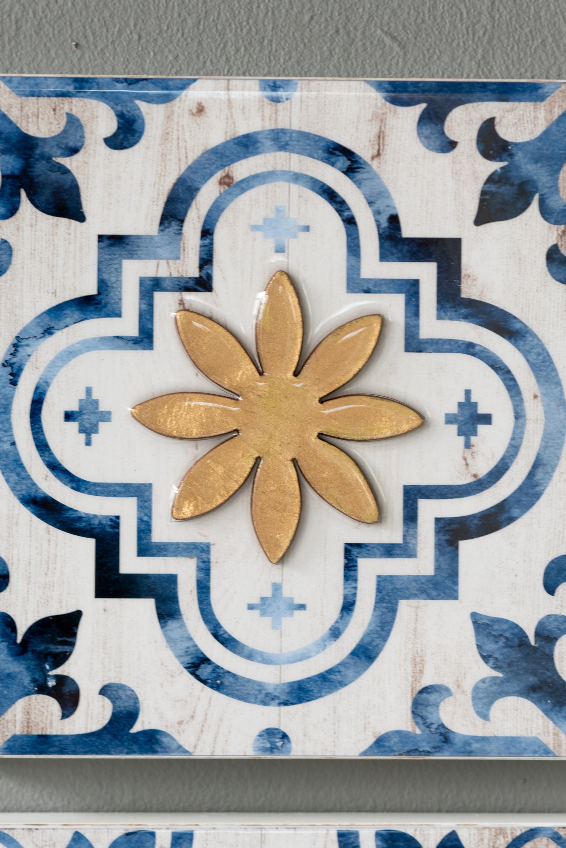 S/4 Abstract Blue, White, and Gold Wall Decor Accents, 9.5x9.5'