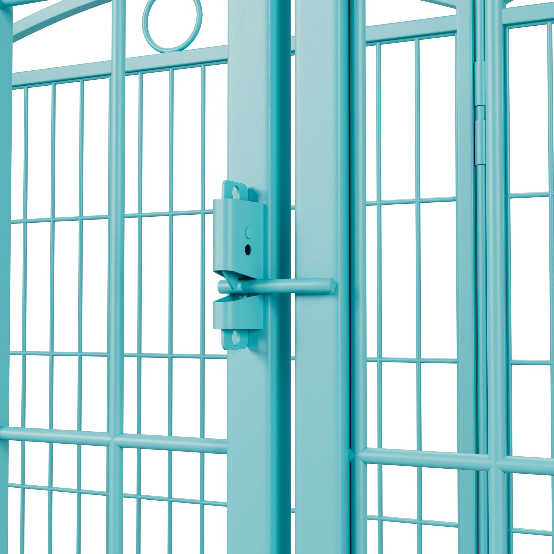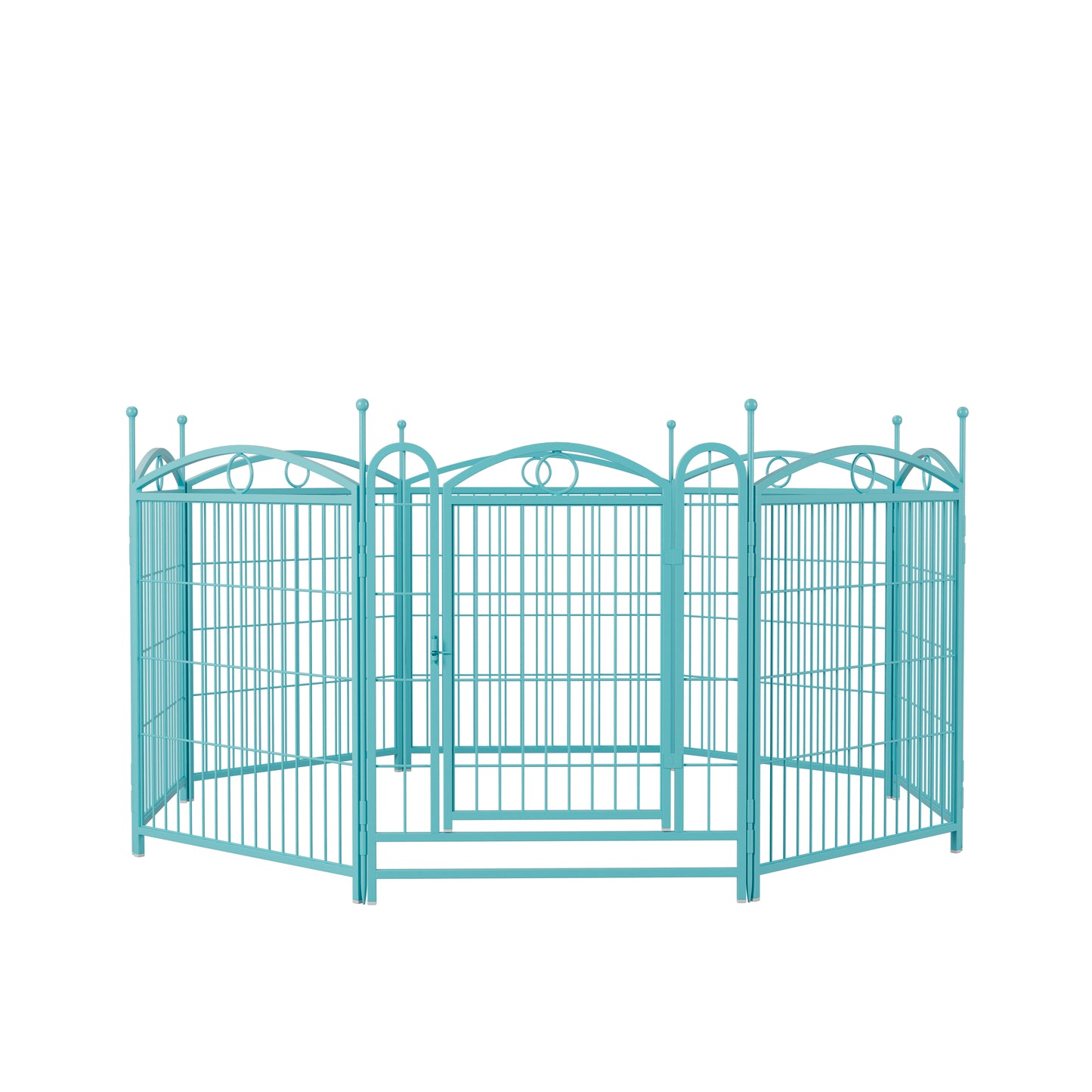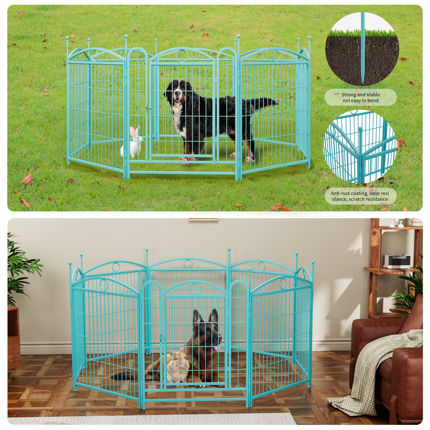 - Anti-Rust & Stable: The dog fences for the yard take in new technology that crafted with silver powder-coated on black heavy-duty thickened iron, come to be highly rust & corrosion resistant, waterproof and anti UV. Enable to increase longevity and durability whatever indoor or outdoor. Coupled with heavy-duty thickened metal pipes add to the stability of the dog pen.