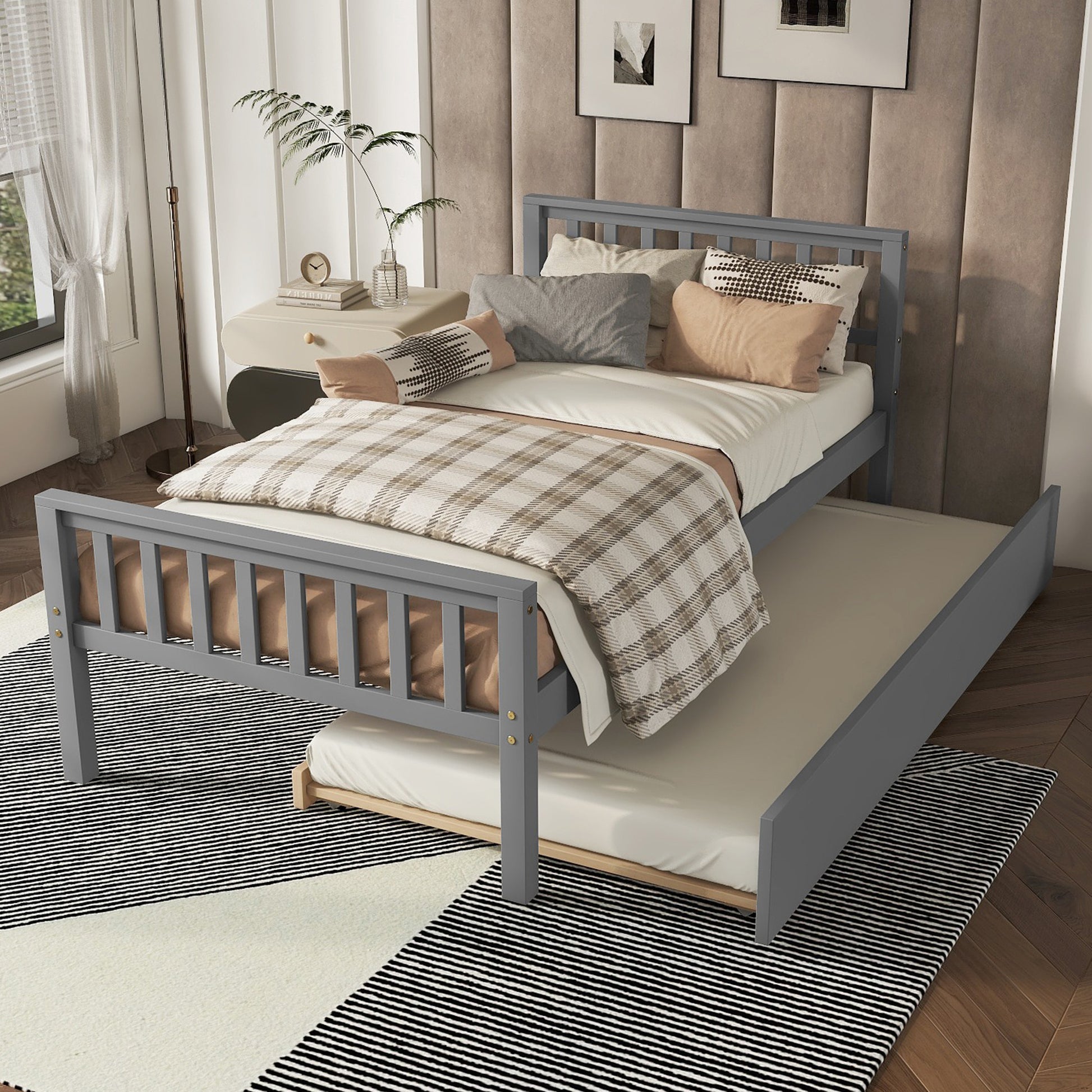 Twin Bed with Trundle, Platform Bed Frame with Headboard and Footboard, for Bedroom Small Living Space,No Box Spring Needed,Grey(Old SKU:W50422210)