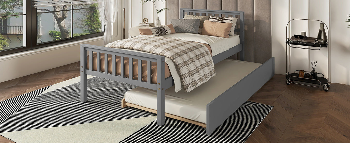 - [Space-Saving Design – Strong Adaptability] The trundle can be accessed easily from either side of the bed, this allows the placement of the trundle to satisfy bedrooms of different layouts and dimensional needs. This space-saving design of this bed is the perfect solution to small living space and is capable of having multiple variations in how the bed can be incorporated into the bedroom without sacrificing on comfort or design.