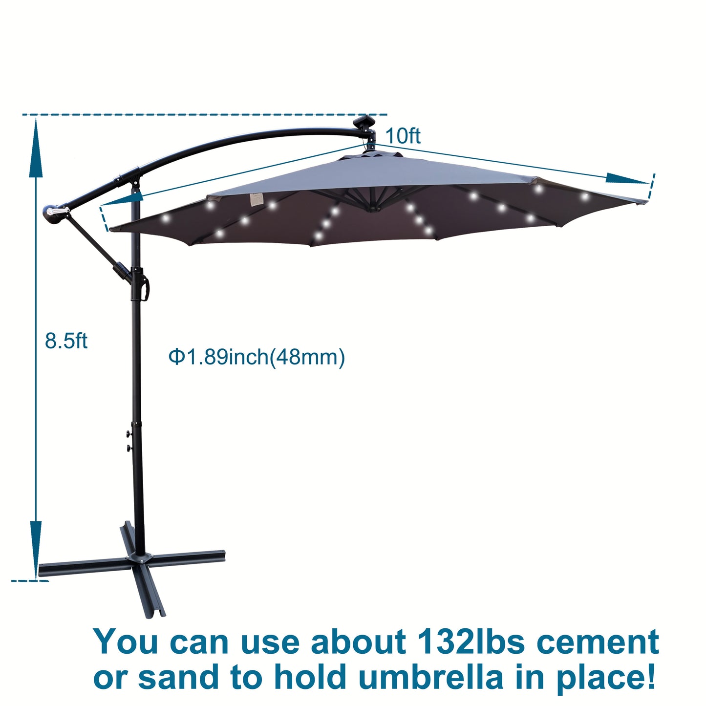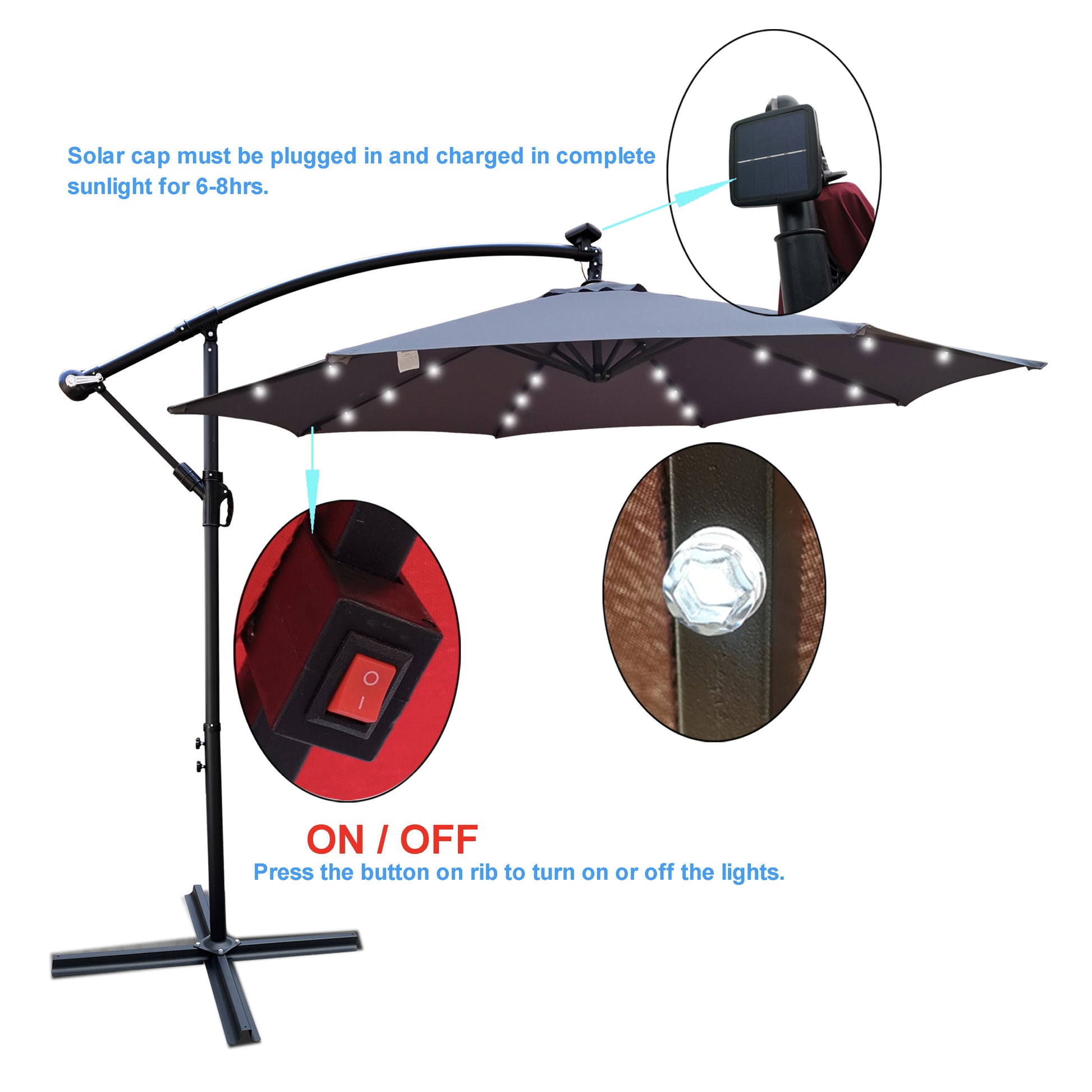 | Package Includes: | 1 X 24 LED Lighted Patio Umbrella;1 X Solar Panel;1X Cross umbrella base |
