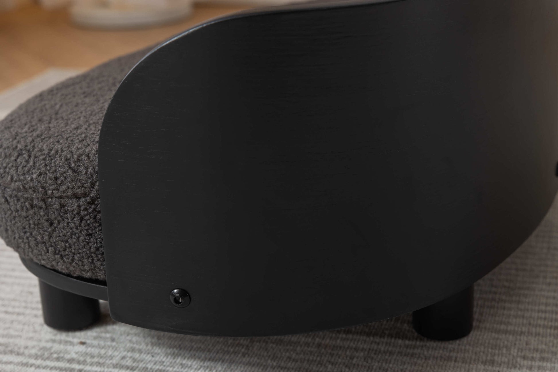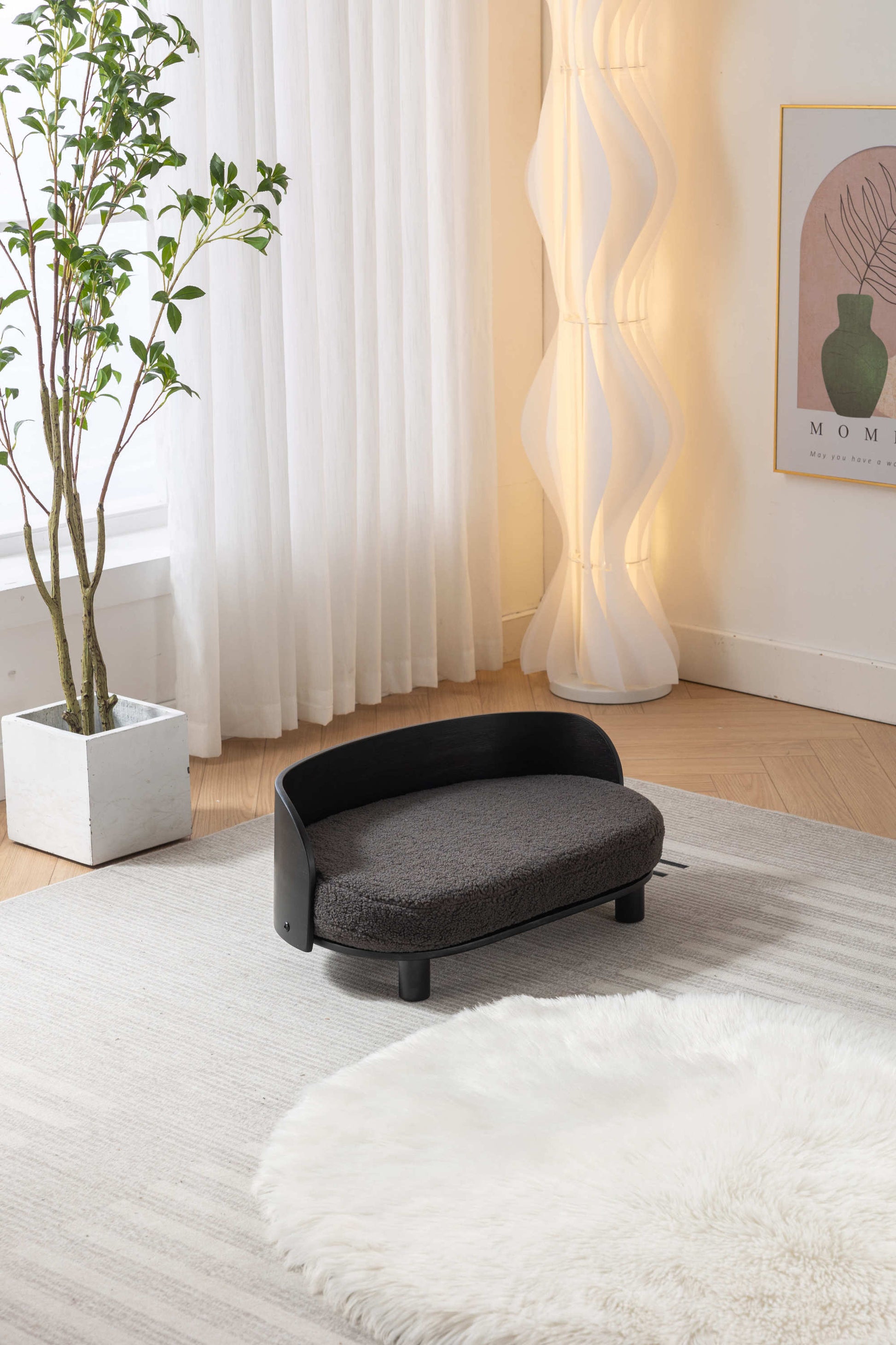 Scandinavian style Elevated Dog Bed Pet Sofa With Solid Wood legs and Bent Wood Back, Cashmesh Cushion, Black wood, Darcy grey cashmesh