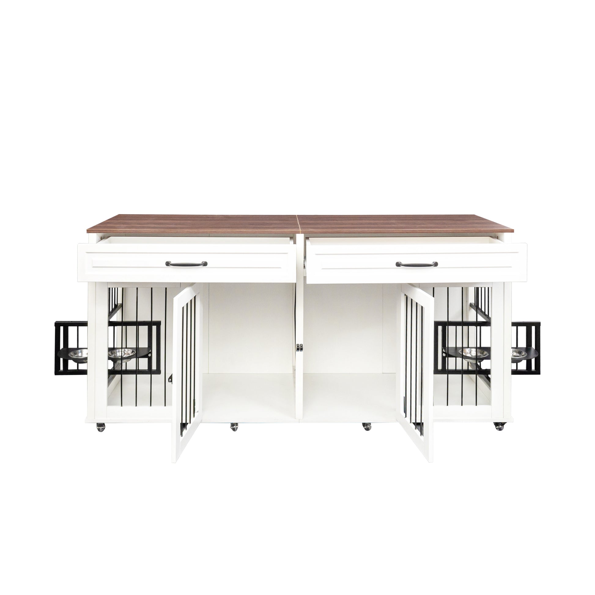 - This designer style indoor dog cage can add beauty to any corner. The color scheme of white and walnut is simple and atmospheric, easily matching various home decoration styles