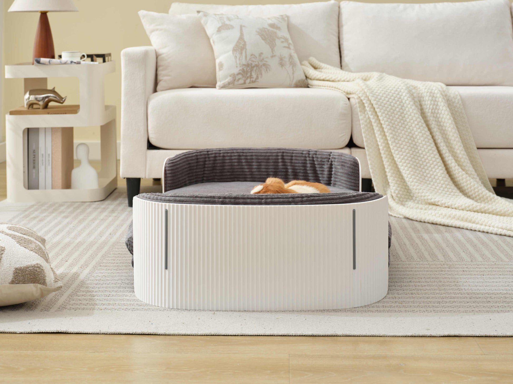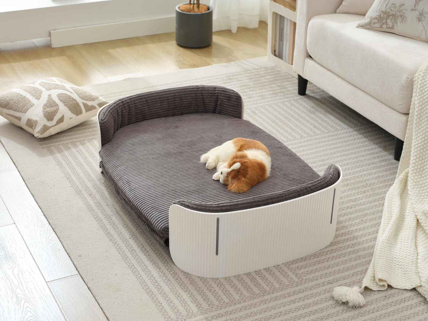Scandinavian style Cat Couch Bed, Pet Sofa for Indoor Cats PP Indoor Pet Furniture Elevated Cat Beds with Removable Mattress Cover Suitable for Mid or Large Animal Brand Design White+Grey