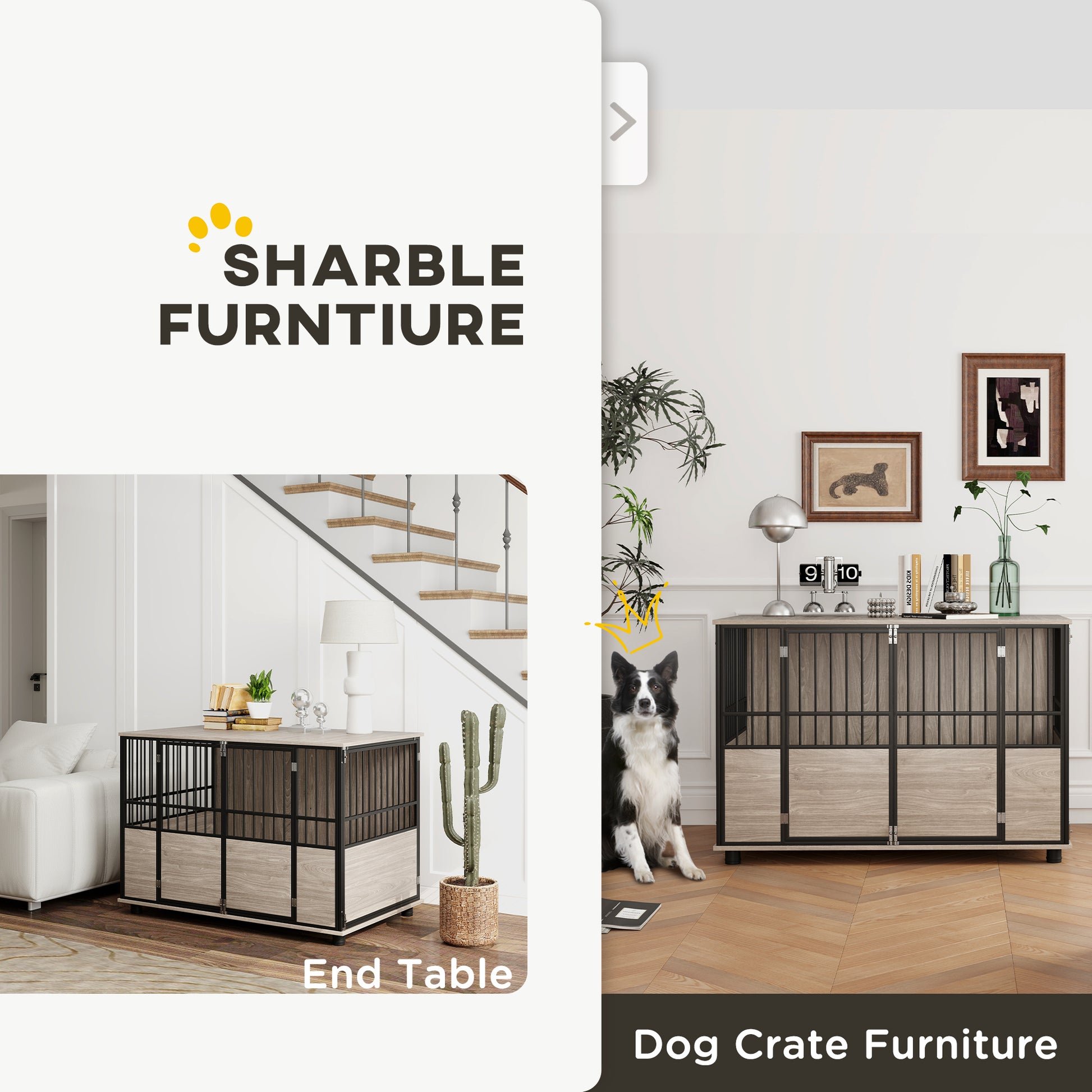 - 1 Crate, 3 Uses: Provides a haven for your furry companions while also serving as a side table or nightstand for you. The top provides smooth wideness to add your choice of home decor such as magazines or night lamps. This modern dog crate meets the needs of everyone, including your dog and your home.