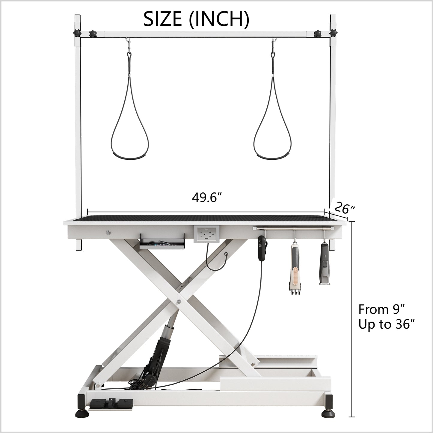 - Heavy Duty Electric Grooming Table design for professional pet groomer. Table size: 49.6"X26", height adjustable from 8" up to 36"