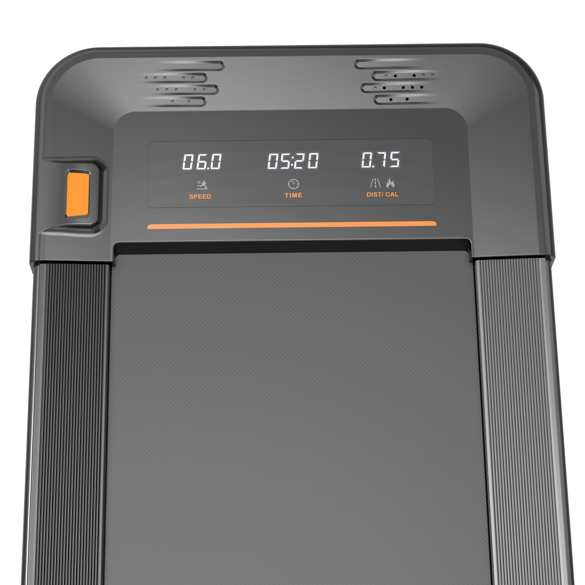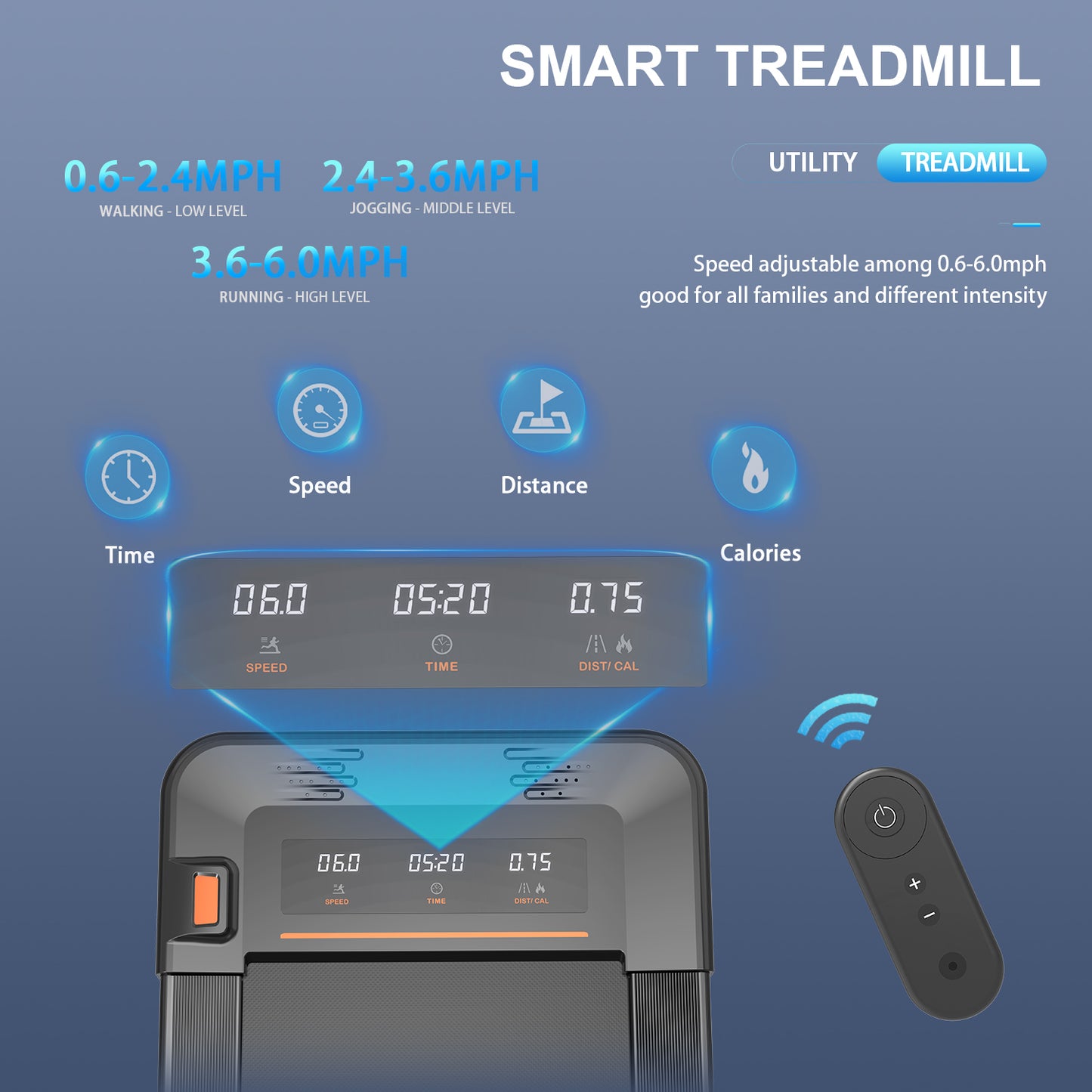 - You can track speed, distance, time and calories through the LED display in real time. The remote control is convenient to adjust the speed while you are walking, jogging or running, and stop the walking treadmill instantly. This mini treadmill allow you to select different speed as per your physical condition and exercise program, available wide speed range 0.6 – 6.0 mph.
