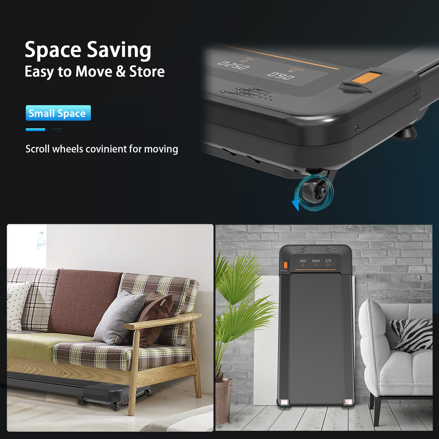 - With 2 transport wheels installed on the desk treadmill, it is easy to be moved and placed under sofa, table or bed for small space saving.