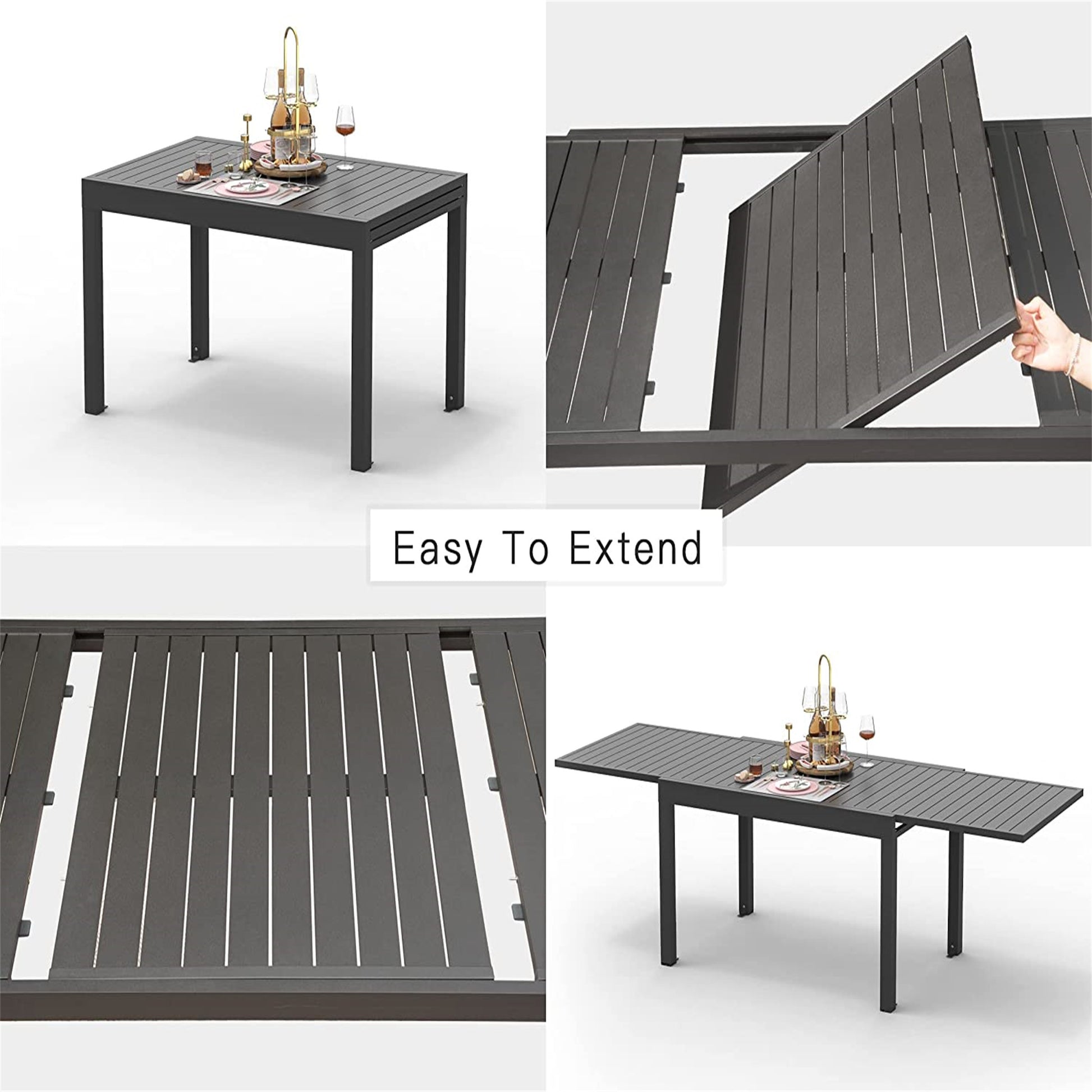 - Sturdy and durable frame: This Expendable Patio Table is made of solid aluminum with e-coating for rust and weather resistance, helping ensure a sturdy table that lasts for years to come. Bring you years of enjoyment on a patio, balcony, or another outdoor area.