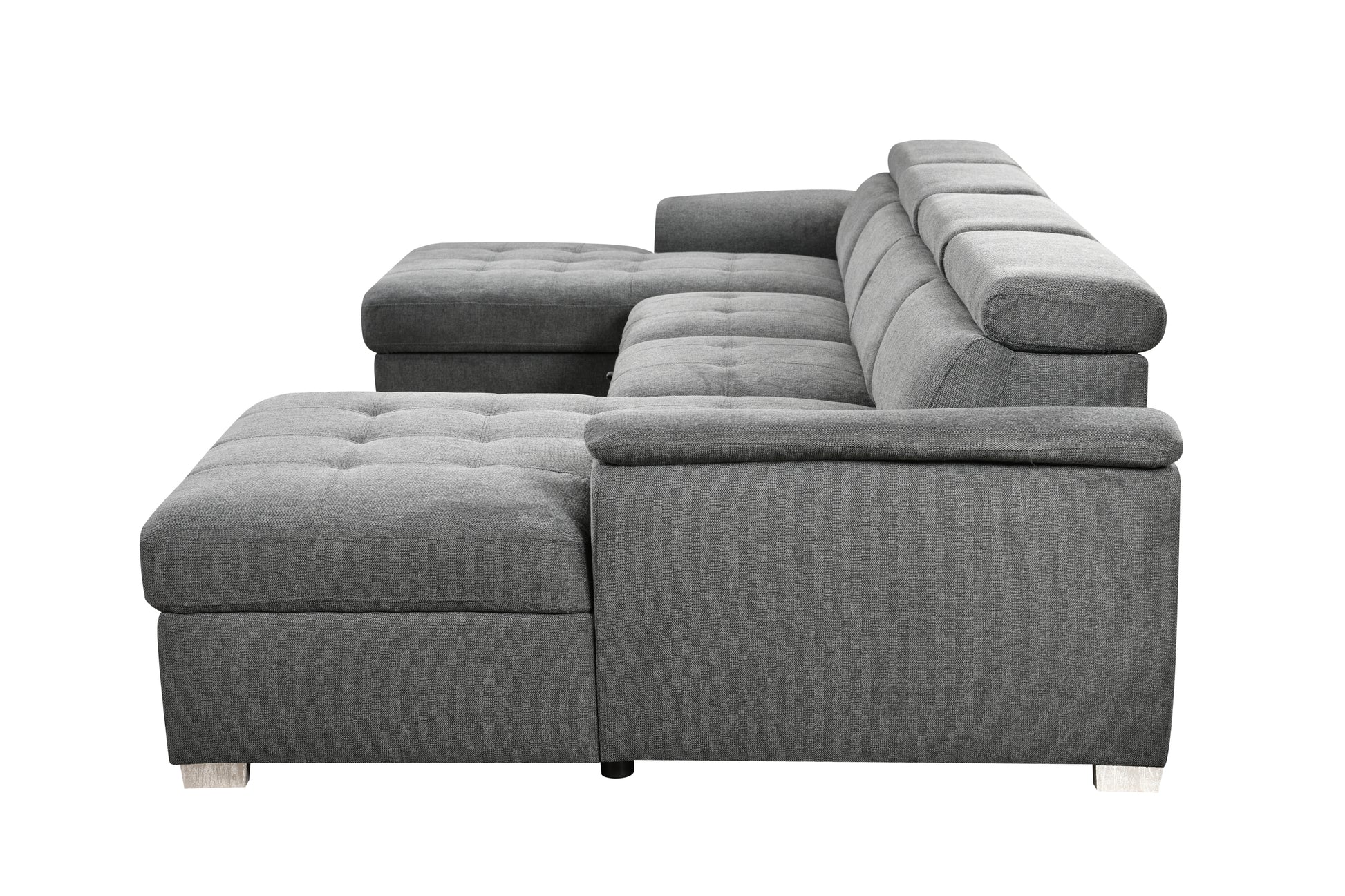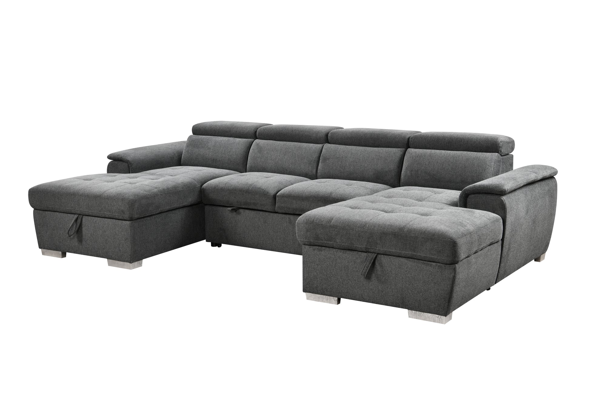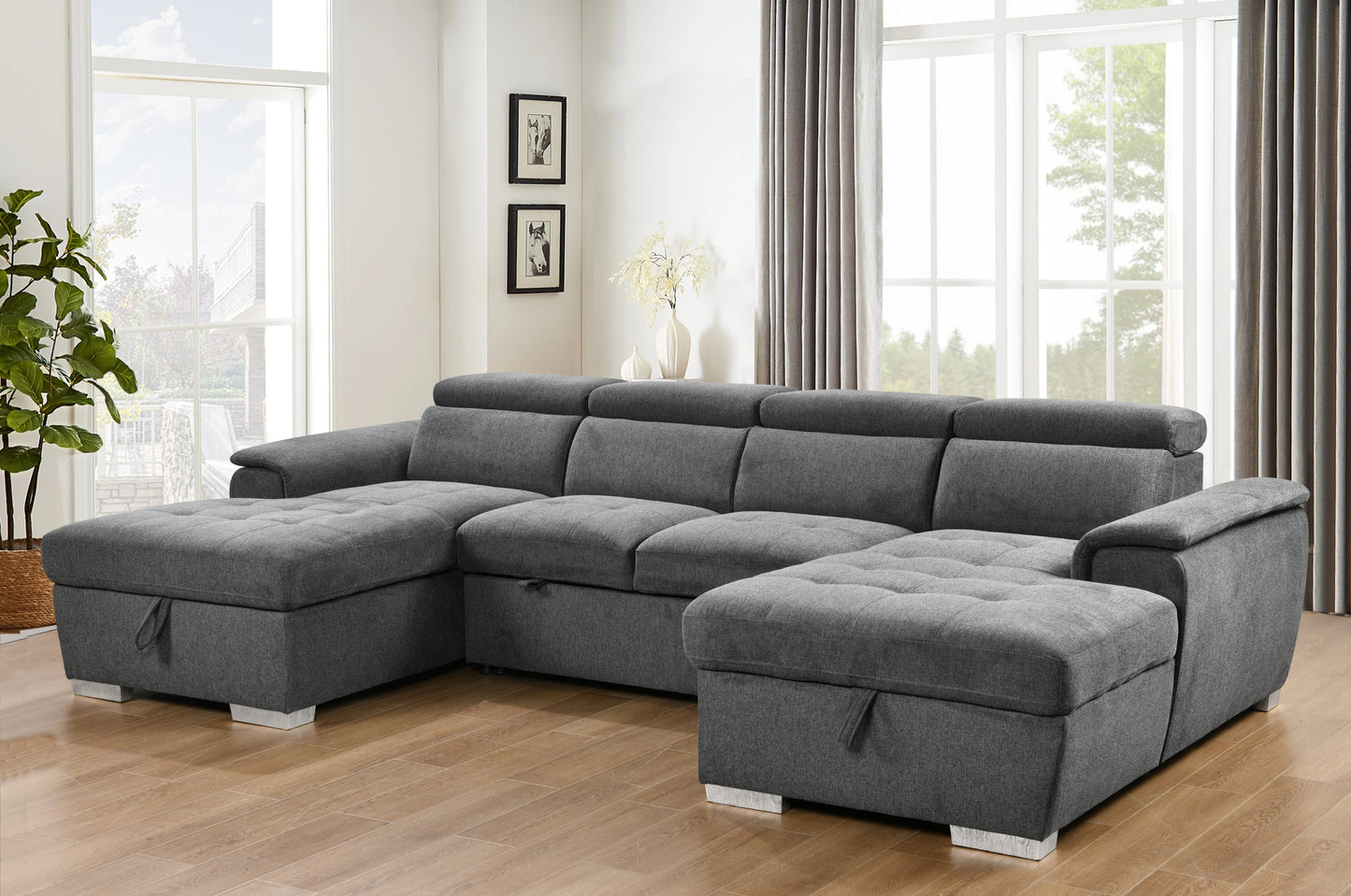 U Shaped Sleeper Sofa, 121 inch Overisze - 2 in 1 Pull Out Bed, Sectional Sleeper Sofa with Double Storage Chaise for Living Room Furniture, Dark Grey