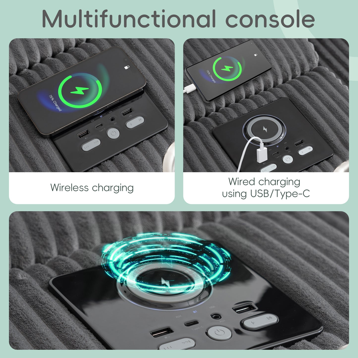 - Wired/Wireless Charging Ports: With integrated wired and wireless charging options, you can conveniently charge your smartphone, tablet, or other devices while relaxing, without the hassle of extra cords or adapters.