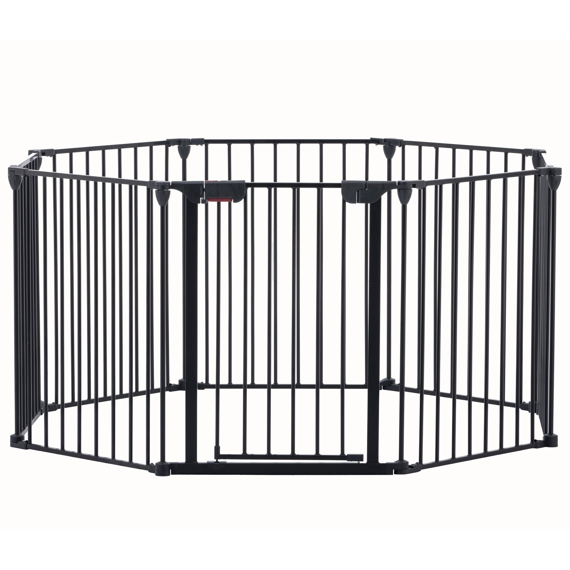 - 4-IN-1METAL SAFETY GATE: 1. Pet Gate - It can be used as a freestanding pet gate when you set it up as a circular enclosure; 2. Safety Fence - Suitable to use around fireplaces, grills, wood burning stoves, Christmas tree, etc. 3. Play yard: Set up sectioned off areas in your home for your toddlers or pets; 4. Barrier: Solid construction make this a great option for creating room dividers; 5. Baby Gate - Great for wide spaces, angled openings, hallway, doorway or bottom of stairs