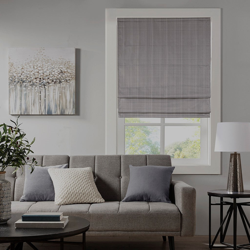 - Casual window treatment Roman Shades 64 inches long (1 panel) in soft grey tone
