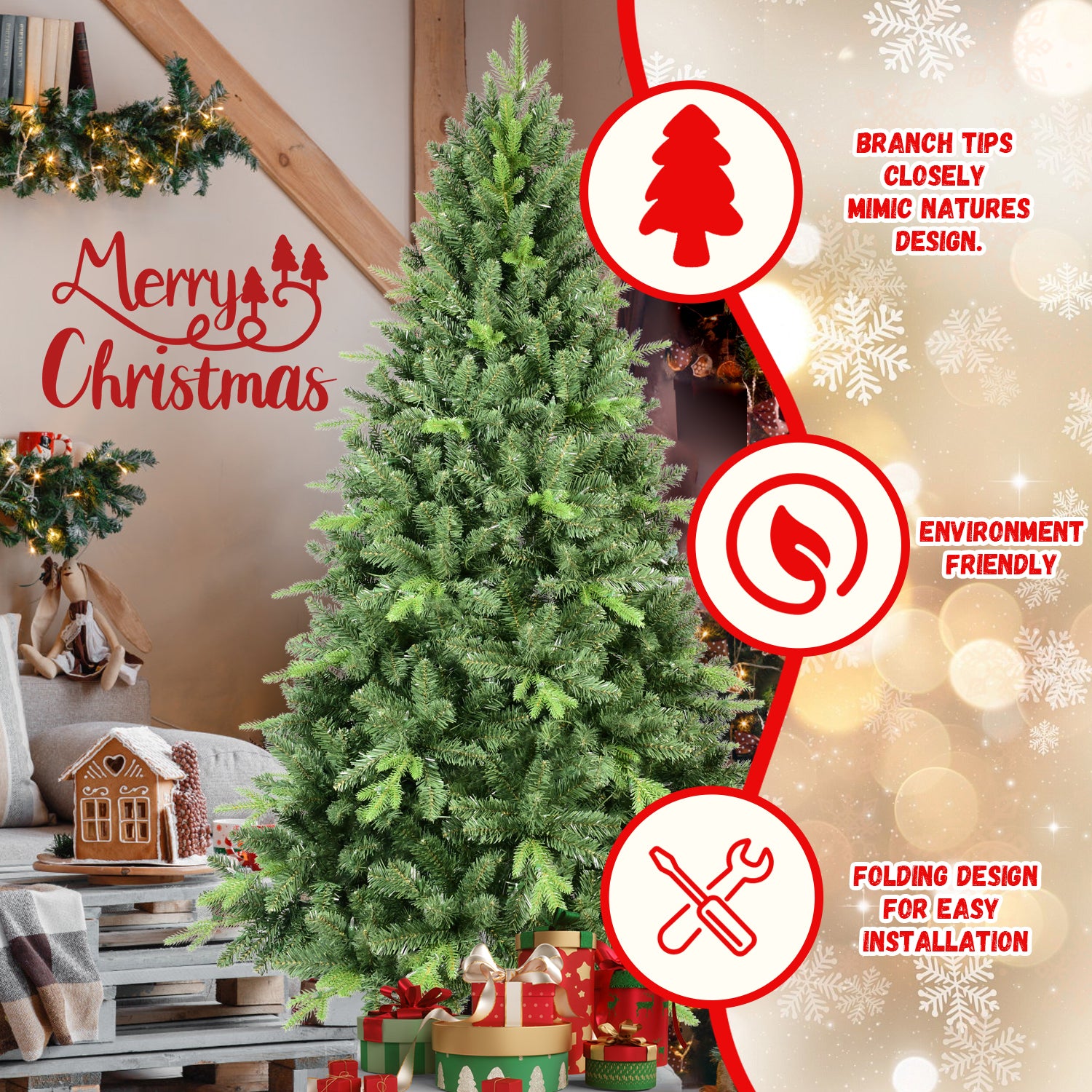 8FT Artificial Christmas Tree with 2535 PE&PVC Mixed Branch Tips, Unlit Hinged Premium Spruce Fake Xmas Trees, Hinged Branch & Foldable Base, Green