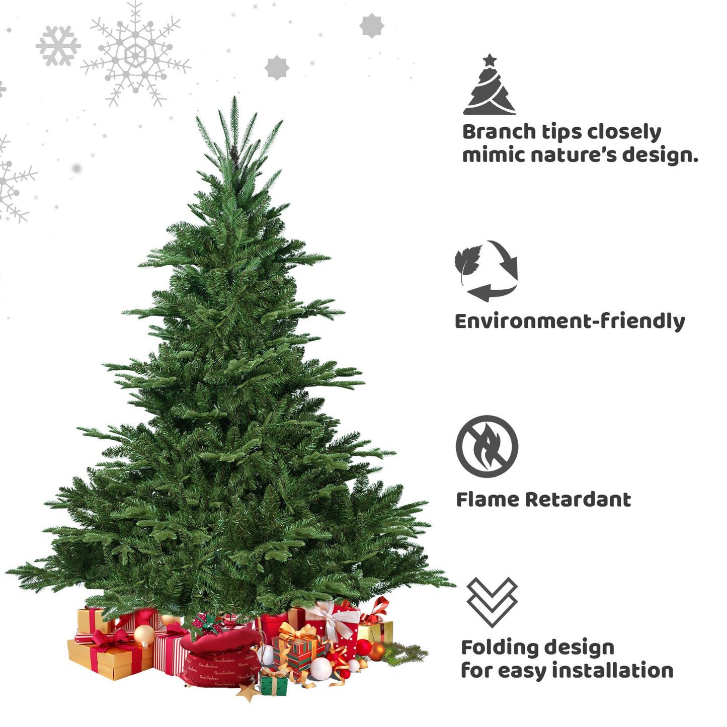 - 【EXCELLENT MATERIAL】Crafted with flame-retardant PE/PVC, this lifelike Christmas fir boasts robust, crush-resistant needles ensuring durability and minimal shedding. Its abundant branches, numbering in the thousands, offer ample space for decorations and lights, inviting personal customization. Complete with a foldable metal stand for steadfast support, it ensures your tree stands tall, worry-free, for a flawless festive season.