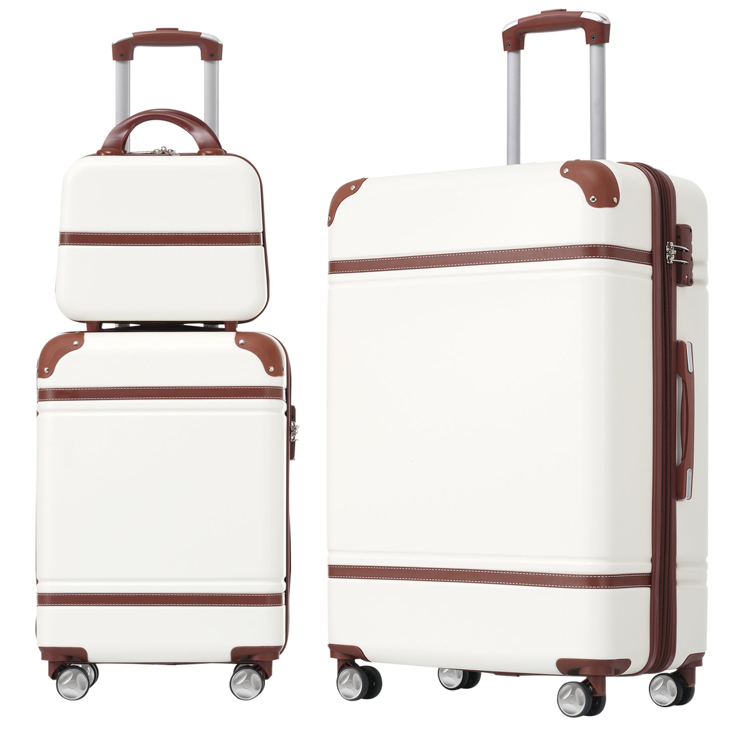 Hardshell Luggage Sets 3 Pieces 20'+28' Luggages and Cosmetic Case Spinner Suitcase with TSA Lock Lightweight,White