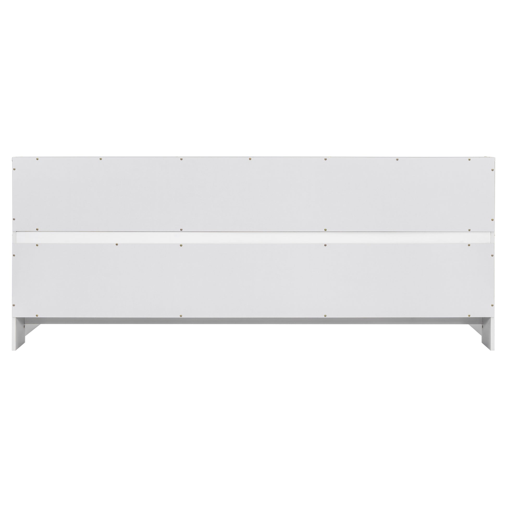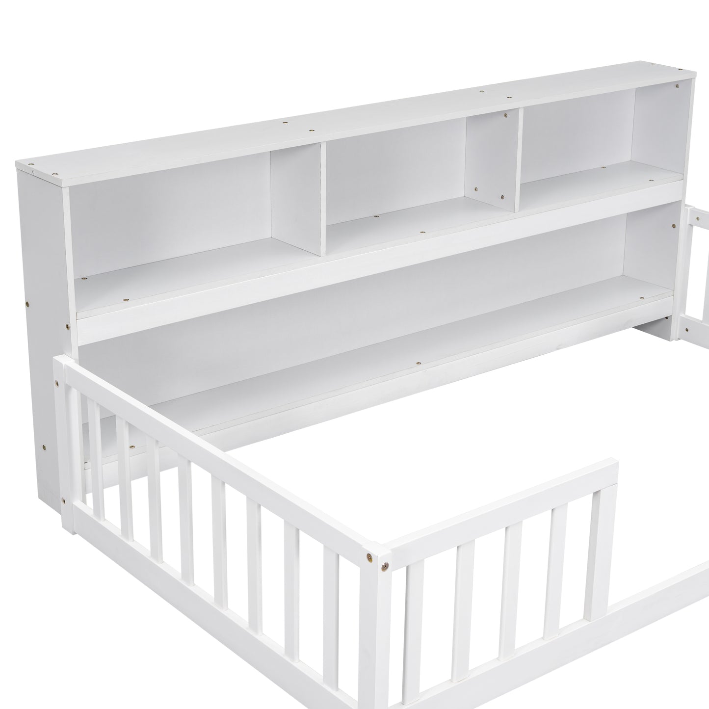 Twin Floor Bed with Bedside Bookcase,Shelves,Guardrails,White