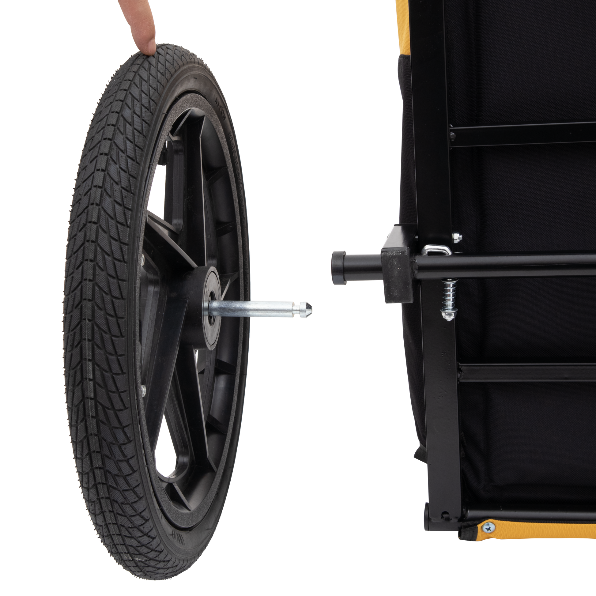 - FOLDABLE FRAME: The unique folding frame makes the Pet Trailer easy to store and bring along on your next adventure! The low maintenance,